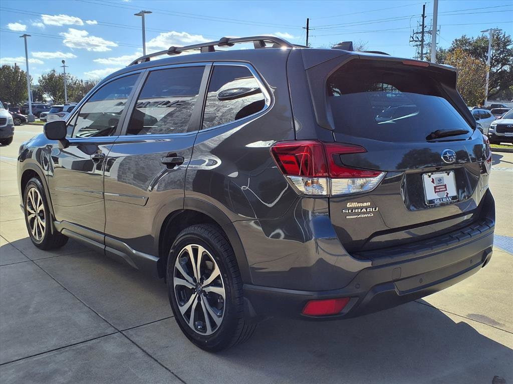 Gillman's Lifetime Engine Warranty lasts as long as you own your vehicle - free with the Gillman Pre-Owned Promise. If the vehicle isn't right for you, return it in purchase condition within 2 days or 200 miles as part of our Happy-Driving Guarantee. Valid only are vehicles under 90,000 miles and less than 7 years old. Discover the perfect balance of safety, comfort, and advanced tech in this gray 2023 Subaru Forester Limited AWD. Equipped with Subaru's renowned full-time all-wheel drive and a powerful yet efficient 2.5L H4 engine, this Forester is ready for any adventure. Enjoy peace of mind with advanced safety features including Front Automatic Emergency Braking, Lane Keeping Assist, Blind Spot Detection, Rear Cross Traffic Alert, and Adaptive Cruise Control. Stay connected with Apple CarPlay, Android Auto, and an 8-inch STARLINK infotainment system. Luxurious touches like leather-trimmed upholstery, heated seats, a panoramic power moonroof, and power liftgate offer both style and convenience. With features such as a rubber cargo mat, cargo sidewall protector, rear camera system washer, and ample cargo space, this crossover is built for your active lifestyle. Visit us today to experience the Forester Limited-where versatility meets sophistication.