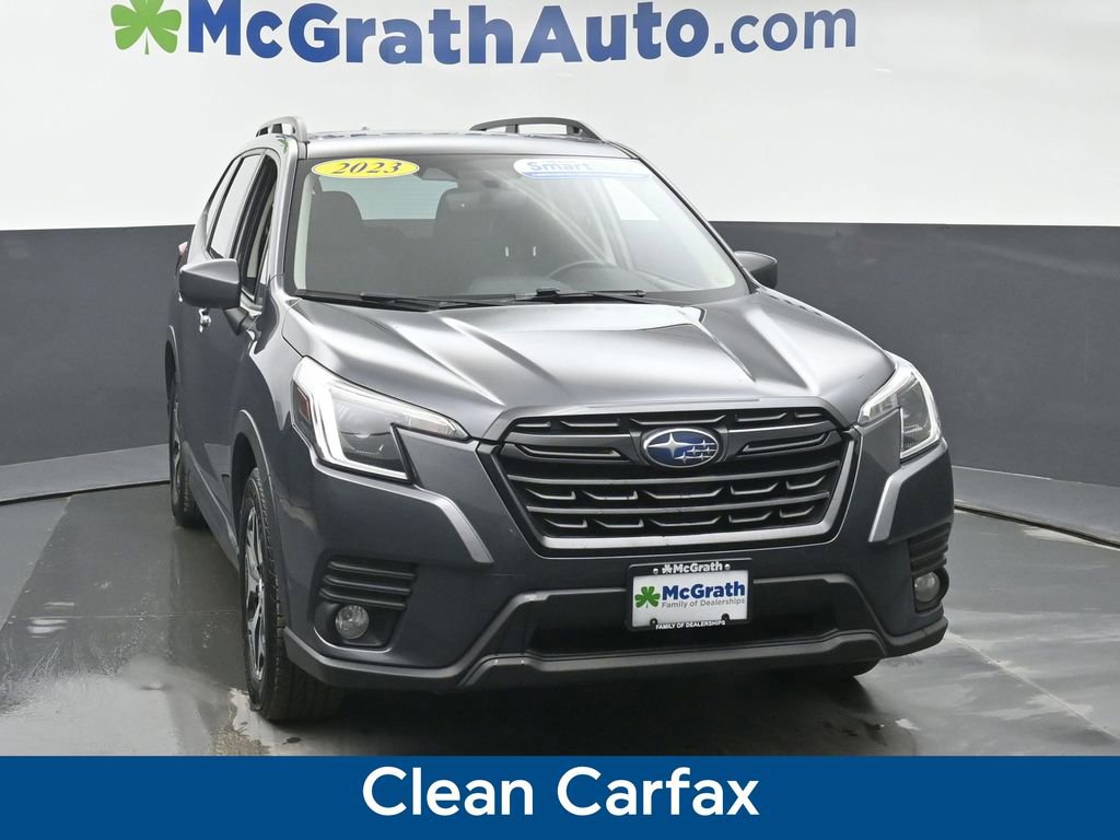 Experience the Versatility and Sophistication of the 2023 Subaru Forester PremiumThis meticulously maintained 2023 Subaru Forester Premium is the perfect blend of capability, style, and advanced technology. With its sleek gray exterior, this Forester is not only visually striking but also boasts an impressive array of premium features that elevate the driving experience. Clean Carfax Blind Spot Detection w/RCTA & Power Rear Gate Popular Package #1Under the hood, the Forester's 2.5L 4-cylinder DOHC 16V engine, paired with Subaru's renowned Lineartronic CVT and Symmetrical All-Wheel Drive, delivers a seamless and efficient performance. With an EPA-estimated 26 mpg in the city and 33 mpg on the highway, this Forester offers exceptional fuel economy, making it an economical choice for your daily commute or weekend adventures.The Forester Premium's interior is designed with your comfort and convenience in mind. Enjoy the convenience of the Power Rear Gate, the added visibility of the Blind Spot Detection with Rear Cross-Traffic Alert system, and the enhanced driver assistance features of the EyeSight system. The Subaru Starlink 6.5 Multimedia Plus System, complete with Apple CarPlay and Android Auto integration, keeps you connected and entertained on the road.This Certified Pre-Owned Forester has been meticulously inspected and comes with a comprehensive warranty, giving you the peace of mind you deserve. With its impressive safety ratings, advanced technology, and versatile capabilities, the 2023 Subaru Forester Premium is the perfect companion for your active lifestyle.Experience the difference for yourself. Contact us today to schedule a test drive and discover why the Forester Premium should be your next vehicle.Prices may change at any time and are subject to availability and prior sale. Taxes, title, license fees, and a $180 documentation fee are not included. Pricing reflects all applicable rebates and incentives assigned to the dealer. Example payments are estimates; actual terms vary based on credit approval. APR and payment estimates apply to qualified buyers, not all buyers qualify for advertised rates. Factory cash incentives may not be combined with promotional APR. Fuel economy ratings and driving range figures are based on EPA estimates for new vehicles, and actual mileage and range may vary. Some in-stock vehicles may include a $1,295 Clear Guard Protection package By submitting your phone number online, you consent to occasional SMS or voice calls about our products and promotions; standard messaging rates may apply. Consult dealer for offer eligibility and other details. Factory MSRP is not the final advertised/asking price of the vehicle. Fuel economy figures are EPA estimates.