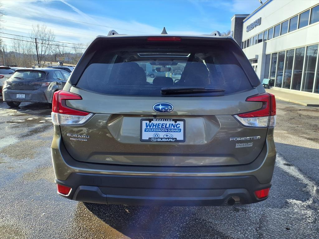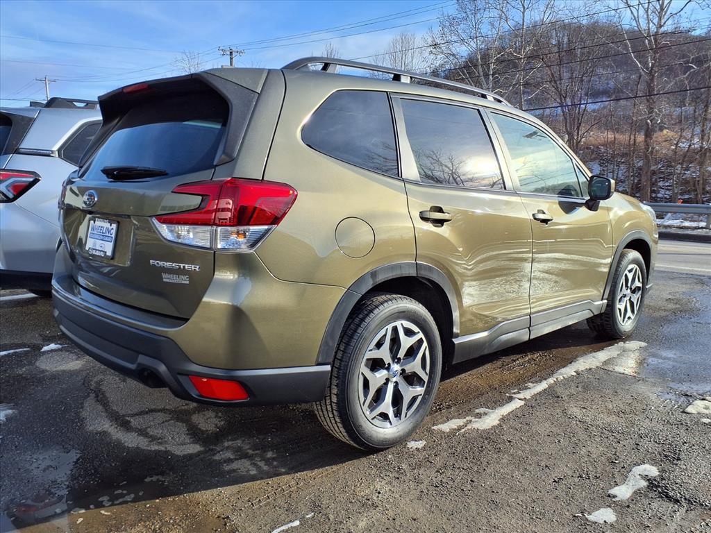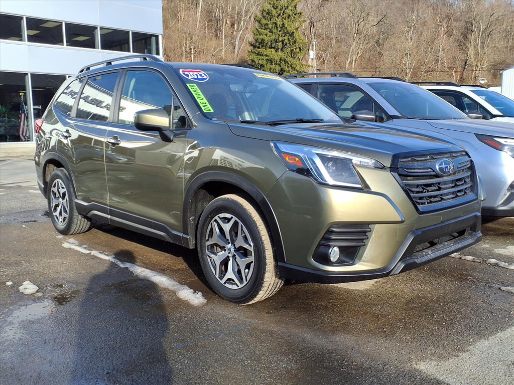 2023 Subaru Forester Premium Autumn Green Metallic Bluetooth, MP3- USB / I-Pod ready, moonroof sunroof, clean vehicle history...no accidents, recent trade in, Subaru certified, remainder of factory warranty, heated seats, one owner. Certified. Subaru Certified Pre-Owned Details: Warranty Deductible: $0, Transferable Warranty, Vehicle History, 152 Point Inspection, SiriusXM 3-Month trial subscription, $500 Owner Loyalty coupon & 1 year trial subscription to STARLINK, Powertrain Limited Warranty: 84 Month/100,000 Mile (whichever comes first) from original in-service date, Roadside Assistance. Clean CARFAX. CARFAX One-Owner. Odometer is 928 miles below market average! 26/33 City/Highway MPG. Proudly serving: Wheeling, Pittsburgh, Moundsville, Steubenville, Washington, Monroeville, Moon Township, Penn Hills, Carnegie, Cranberry Township, North Huntington, Butler County, Allegheny County, Huntington, Charleston, Morgantown, Columbus, Cleveland, Youngstown, Wintersville, and all of greater Pennsylvania, West Virginia, Ohio, and Maryland.