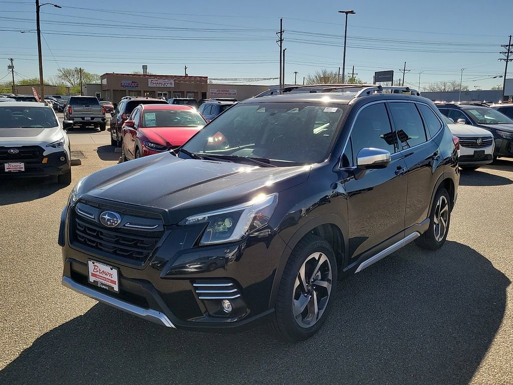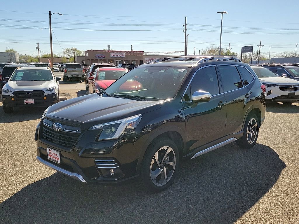 Certified. Recent Arrival! 2023 Crystal Black Silica Subaru Forester Touring AWD 2.5L 4-Cylinder DOHC 16V This Subaru Forester has many features and is well equipped including, Adaptive Cruise Control, Leather Seats, Heated Seats, Apple CarPlay, Android Auto, Bluetooth Hands-Free, Sunroof/Moonroof, Cargo Package, Heat Package. Certification Program Details: Brown Certified Program. 6 Month 6,000 Mile Comprehensive Coverage. 7yr. 100,000 Mile Powertrain Coverage From Date of First Use. Warranty is good at any ASE certified facility. See dealer for details. Thank you for taking the time to look at this outstanding-looking 2023 Subaru Forester. If you're tired of other Amarillo car dealerships treating you poorly, come see us. We know there is nothing worse than dealing with rude salespeople, which is why we take a softer approach. We don't like to use high-pressure sales tactics, and we treat each and every customer who sets foot on our lot with respect. If you're seeking a relaxed car buying experience in Amarillo or anywhere in the Texas panhandle, come see the Brown Automotive Group!