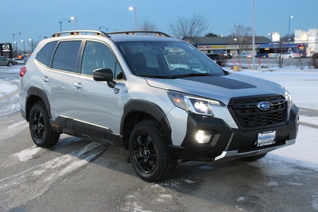 CARFAX One-Owner. Clean CARFAX. Certified. 2023 Subaru Forester 4D Sport Utility Wilderness Ice Silver Metallic 2.5L 4-Cylinder DOHC 16V Lineartronic CVT AWD. Subaru Certified Pre-Owned Details: Transferable Warranty, Vehicle History, SiriusXM 3-Month trial subscription, $500 Owner Loyalty coupon & 1 year trial subscription to STARLINK, Warranty Deductible: $0, 152 Point Inspection, Roadside Assistance, Powertrain Limited Warranty: 84 Month/100,000 Mile (whichever comes first) from original in-service date. Don't forget to ask us about our exclusive Autobarn Preferred Plan... Dealer not responsible for typographical errors, photo errors, pricing errors, or equipment errors. Please verify with a dealer representative that all details listed are accurate.