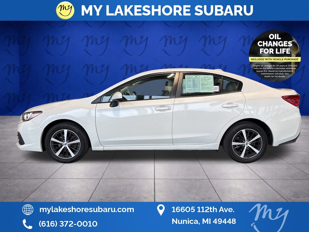 Impreza Premium, Crystal White Pearl, All wheel drive, Apple CarPlay & Android Auto, Backup camera, EyeSight Driver Assist, Heated seats, Lane departure warning, Oil changes for life. Certified. Crystal White Pearl 2023 Subaru Impreza Premium AWD CVT Lineartronic 2.0L DOHC. My Lakeshore Subaru is your #1 choice in Michigan to get the best price on used vehicles and best value for your trade. The My Lakeshore Subaru team is ready to provide you with a world-class experience, ensuring that you find the perfect vehicle that fits all your needs. Every vehicle has been through a full safety inspection completed by certified technicians and fully detailed. Recent Arrival! 28/36 City/Highway MPG.