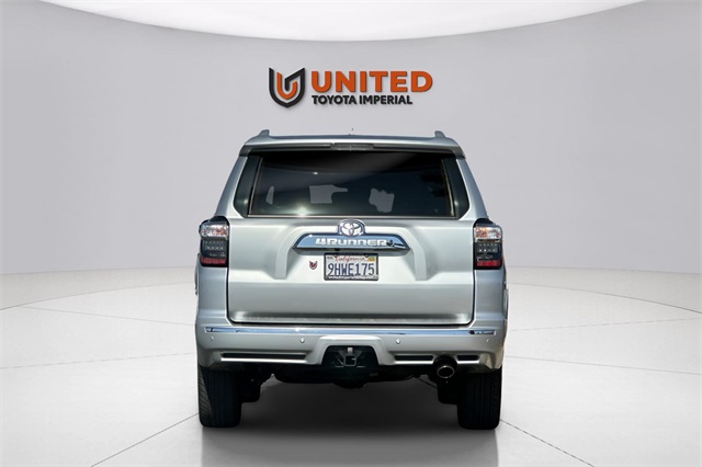Certified. Toyota Gold Certified Details: Roadside Assistance, Limited Warranty, 160 Point Inspection, Vehicle History, Transferable Warranty, Powertrain Limited Warranty. Priced below KBB Fair Purchase Price! Odometer is 20794 miles below market average! CARFAX One-Owner. Clean CARFAX. Third row seating, Black/Graphite w/Leather seat trim, Alloy wheel locks (PPO) (TMS), Automatic running boards, exhaust tip (PPO) (TMS), leather-trimmed 50/50 split fold-flat 3rd row, trunk carpet. 2023 Toyota 4Runner Limited RWD 5-Speed with ECT. For any questions about any vehicle please contact our Sales Department at 760-457-0050.