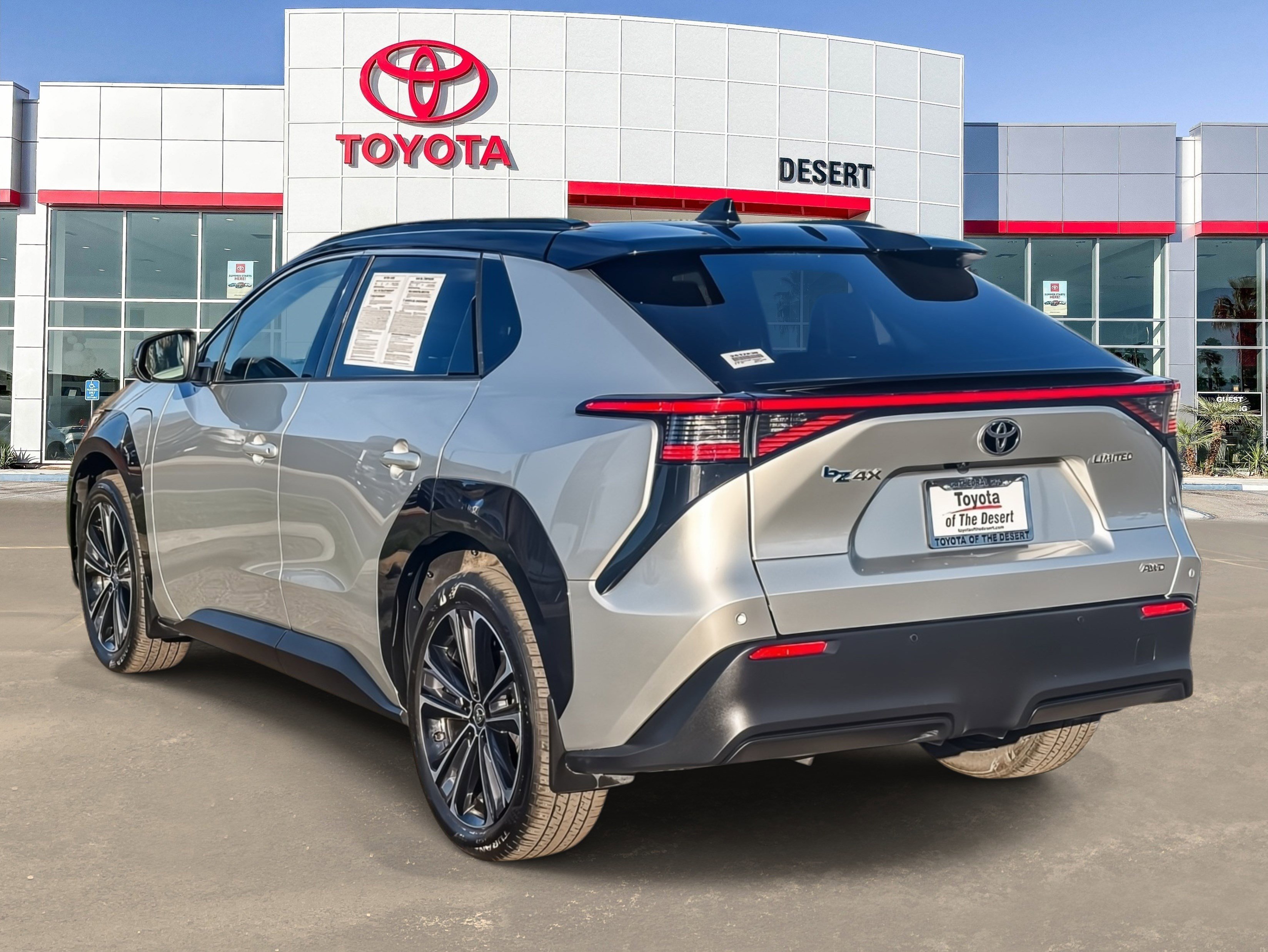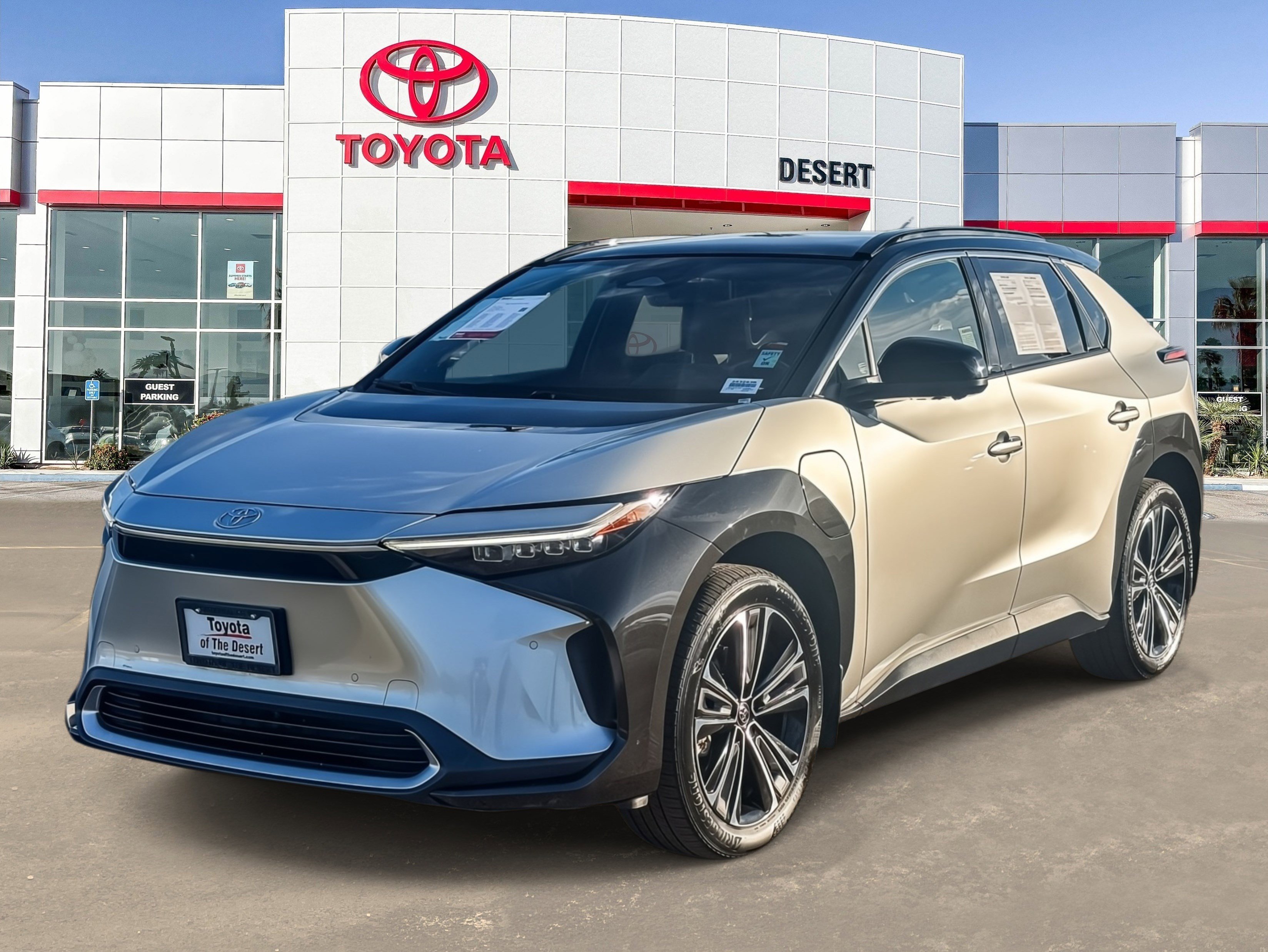 Toyota of the Desert is pleased to offer this stunning-looking 2023 Toyota bZ4X Limited in Elemental Silver Metallic. CARFAX One-Owner. Certified. Freshly Detailed, Touchscreen Display, Bluetooth Wireless/Hands Free, Apple Car Play, Android Car Play, Panoramic Moonroof/Sunroof, Active Blindspot Monitor, Collision Warning System, Back Up Camera, Power Driver Seat, Keyless Entry, Heated Front Seats. Odometer is 6069 miles below market average! We're time efficient -- Wouldn't it be awesome to get the deal you want in 30 minutes or less? We can make that happen. Complete transparency at every step. Whether it's condition, pricing, financing or just general car knowledge, we excel at the details! Different culture recruited for a different purpose. We create a culture designed to educate and help, not just sell! Our non-commissioned sales staff serves you -- That means you buy what you want, not what someone wants to sell you. Our dealership's mission is to make every customer a customer for life by providing world class services every time. Excellent customer care, competitive prices, and our well-trained staff are a few of the great features about shopping at our new and used Toyota dealership. Give our dealership a call or visit us in Cathedral City today and take a test drive in your dream vehicle. Toyota of the Desert is proud to serve the surrounding areas of Palm Springs, Palm Desert, Coachella, and Indio. We also offer Military Discounts for our active-duty service members.