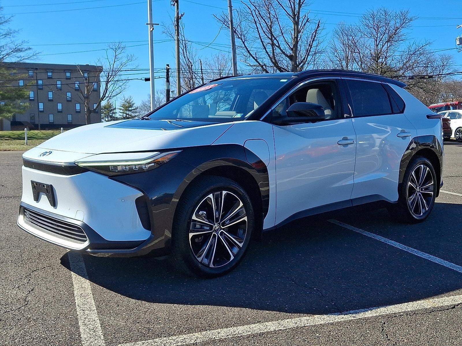 Recent Arrival! Certified. 2023 Toyota bZ4X Wind Chill Pearl w/Black Roof ABS brakes, Alloy wheels, Electronic Stability Control, Front dual zone A/C, Heated & Ventilated Front Seats, Heated door mirrors, Heated front seats, Illuminated entry, Low tire pressure warning, Power Liftgate, Remote keyless entry, Traction control. CARFAX One-Owner. Clean CARFAX. Call 215-244-9300 or stop by Faulkner Toyota Trevose, everything we do revolves around you. Once you've chosen your next car, our team of financing experts are trained to sort through various auto loan and lease details in order to help you find the right one for your needs. We are proud to serve the Feasterville, Philadelphia, Bensalem and Langhorne areas with Toyota cars, parts, service and financing options. 2425 Old Lincoln Highway Bensalem, Pa 19020.