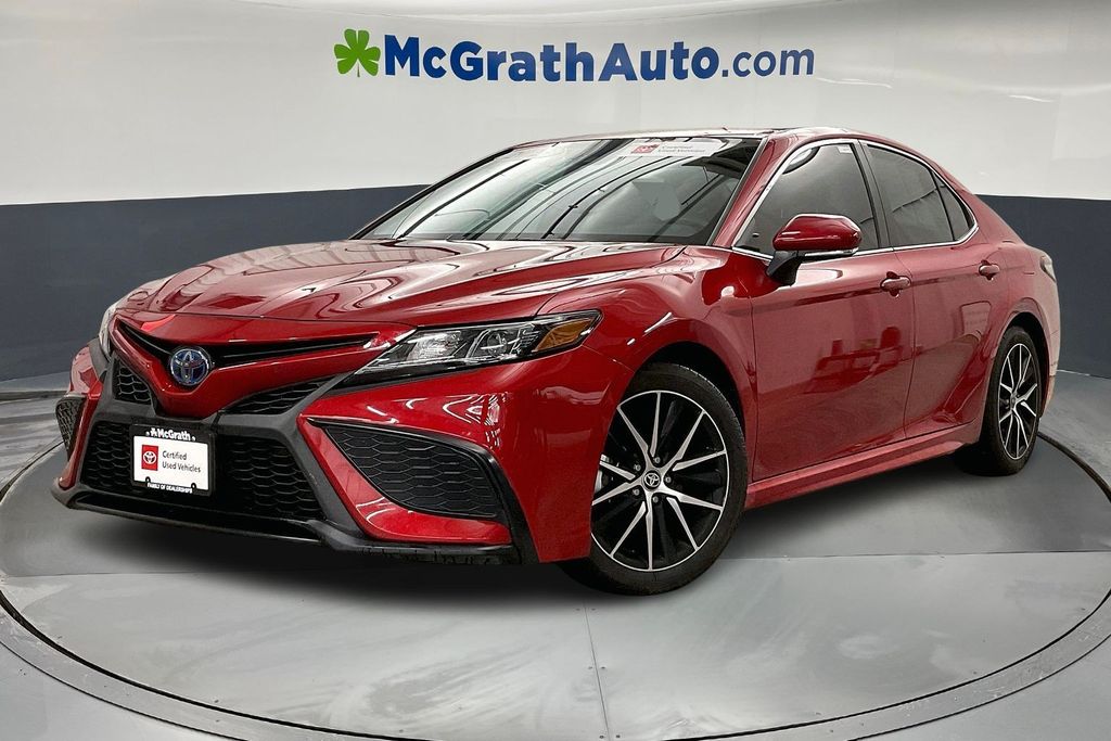Discover the perfect blend of efficiency and style with this 2023 Toyota Camry Hybrid SE. This meticulously maintained, Toyota Gold Certified vehicle is the ideal choice for those seeking a dynamic and eco-friendly driving experience. Powered by a 2.5L I4 DOHC 16V engine and an eCVT transmission, this Camry Hybrid delivers an impressive 44 city/47 highway MPG, allowing you to go further on every tank. Its sleek, red exterior and well-appointed interior create a sophisticated and modern aesthetic that is sure to turn heads. Indulge in the convenience of features like remote keyless entry, an exterior parking camera, and a host of advanced safety technologies. The Camry Hybrid's impressive list of amenities, including dual-zone automatic climate control, a power driver's seat, and a premium audio system, ensure a comfortable and connected driving experience. This Toyota Gold Certified pre-owned vehicle has undergone a rigorous 160-point inspection, giving you the peace of mind that comes with a comprehensive warranty and roadside assistance. With a $0 deductible and a limited warranty covering you for 12 months or 12,000 miles, you can drive with confidence, knowing your investment is protected. Discover the perfect balance of efficiency, style, and peace of mind with this 2023 Toyota Camry Hybrid SE. Visit our showroom today and experience the difference for yourself. We're confident you'll be impressed by the quality, performance, and value this exceptional vehicle has to offer.
