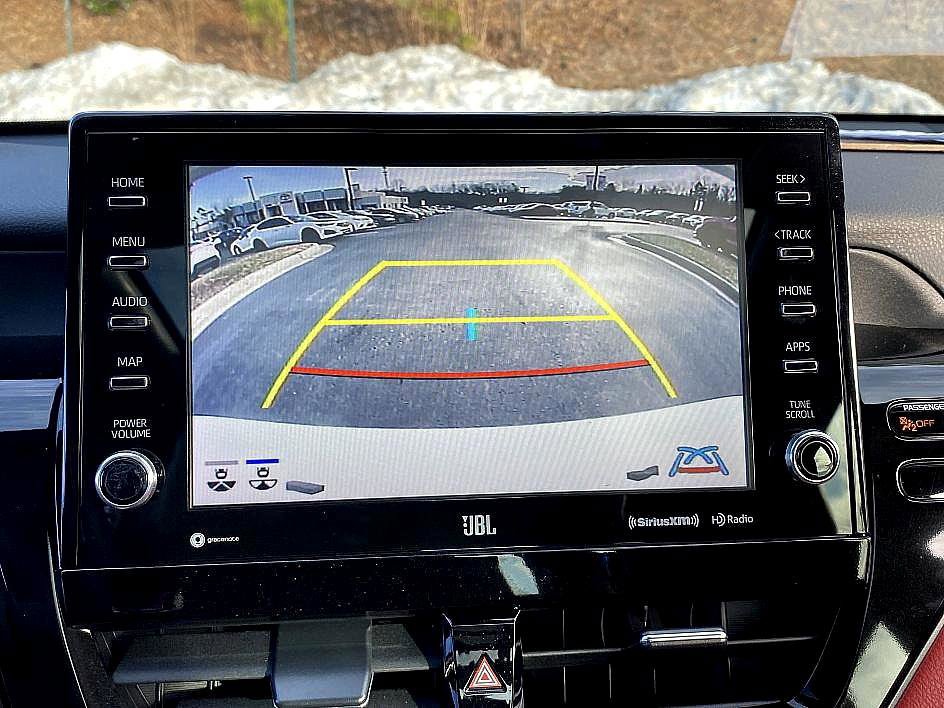 The 2023 Toyota Camry XSE in Wind Chill Pearl is powered by a 2.5L I-4 DOHC 16-valve engine paired with an 8-speed automatic Direct Shift ECT-i transmission and 50-state emissions compliance. It features a sport-oriented stance with P235/40R19 all-season tires mounted on 19-inch alloy wheels and includes a panoramic glass roof for an open, upscale feel. Inside, the cabin offers multi-stage heated front bucket seats trimmed in perforated leather with Cockpit Red interior accents, along with a premium JBL audio system with navigation. Additional conveniences include carpeted floor mats and a trunk mat, making this Camry XSE a refined blend of performance, comfort, and modern technology. Wind Chill Pearl FWD 8-Speed Automatic 2.5L I4 DOHC 16V. Certified. CARFAX One-Owner.