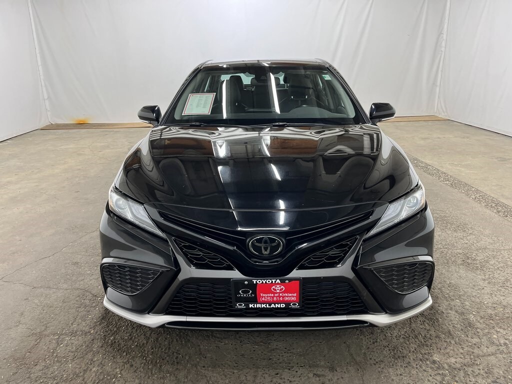 Toyota Gold Certified Certified, Black Leather, 4-Wheel Disc Brakes, 6 Speakers, ABS brakes, Air Conditioning, Alloy wheels, AM/FM radio: SiriusXM, Apple CarPlay/Android Auto, Auto High-beam Headlights, Auto-dimming Rear-View mirror, Automatic temperature control, Brake assist, Bumpers: body-color, Delay-off headlights, Driver door bin, Driver vanity mirror, Dual front impact airbags, Dual front side impact airbags, Electronic Stability Control, Emergency communication system: Safety Connect (1-year trial), Exterior Parking Camera Rear, Four wheel independent suspension, Front anti-roll bar, Front Bucket Seats, Front Center Armrest, Front dual zone A/C, Front reading lights, Fully automatic headlights, Garage door transmitter: HomeLink, Heated door mirrors, Heated front seats, Illuminated entry, Knee airbag, Leather steering wheel, Low tire pressure warning, Multi-Stage Heated Front Bucket Seats, Occupant sensing airbag, Outside temperature display, Overhead airbag, Overhead console, Panic alarm, Passenger door bin, Passenger vanity mirror, Perforated Leather Seat Trim, Power door mirrors, Power driver seat, Power passenger seat, Power steering, Power windows, Radio data system, Radio: Audio Plus, Rear anti-roll bar, Rear reading lights, Rear seat center armrest, Rear side impact airbag, Rear window defroster, Remote keyless entry, Security system, Speed control, Speed-sensing steering, Split folding rear seat, Spoiler, Steering wheel mounted audio controls, Tachometer, Telescoping steering wheel, Tilt steering wheel, Traction control, Trip computer, Turn signal indicator mirrors, Variably intermittent wipers, Wheels: 8.0J x 19" Alloy, Black Leather. Features: 2023 Toyota Camry XSE Midnight Black FWD 2.5L I4 DOHC 16V 8-Speed Automatic Certified. Toyota Gold Certified Details: Powertrain Limited Warranty: 84 Month/100,000 Mile (whichever comes first) from TCUV purchase date. Roadside Assistance. Transferable Warranty. Roadside Assistance for 7 Year / 100,000 Mile. Standard New-Car Financing Rates Available. Warranty honored at over 1,400 Toyota dealers in the continental U.S. & Canada. Trade-ins accepted. Trouble-free handling of your transaction, including DMV paperwork. Warranty Deductible: $0. Vehicle History. 160 Point Inspection. Limited Warranty: 12 Month/12,000 Mile Limited Comprehensive Warranty: 12 Month/12,000 Mile (whichever comes first) from certified purchase date. CARFAX One-Owner. Recent Arrival! Odometer is 660 miles below market average! 27/38 City/Highway MPG Come to www.ToyotaofKirkland.com To See Our Specials!!! Call 425-814-9696 For help with any of our Departments. See us on our Facebook Page!! We have a Google 4.5 Star Rating!!! Our Customers Love Us! We are customer friendly and will treat you and your family the way you deserve.