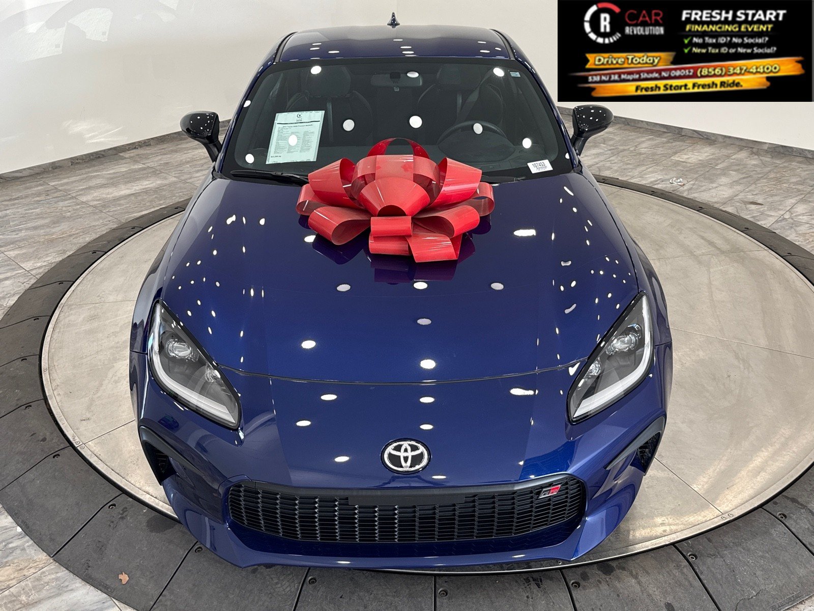 Car Revolution has a wide selection of exceptional pre-owned vehicles to choose from, including this 2023 Toyota GR86. This Toyota includes: Optional Equipment: Interior All Weather Mat Package Rubber front and rear floor mats Quick Charge Cable GR Shift Knob Leather and aluminum gear shifter material GR Key Gloves Black Comfort Rubber front and rear floor mats Exterior and Appearance Pearlcoat paint Paint Trueno Blue Pearlcoat paint Emissions 50 State Emissions LEV3-ULEV125 emissions Tier 3 Bin 125 emissions Exterior GR Fender Vent Inserts Paint Protection Film Door Edge Guards Rear Bumper Applique - Clear. There is no reason why you shouldn't buy this Toyota GR86 Premium Manual. It is incomparable for the price and quality. You've found the one you've been looking for. Your dream car. The quintessential Toyota -- This Toyota GR86 Premium Manual speaks volumes about its owner, about uncompromising individuality, a passion for driving and standards far above the ordinary. Car Revolution has been in business since 1998 with 2 locations and over 300 cars. A family owned business, focused and determined to extend hospitality to all our clients. We make every effort to present information that is accurate. However, it is based on data provided by the vehicle manufacturer and other sources. Therefore exact Configuration, Color, Certification and Accessories should be used as a guide only and are not guaranteed under any circumstances, for any inaccuracies, claims of losses of any nature. All advertised prices includes all cost to be paid by the consumer, except: Title, Taxes, Registration, License Fees, Insurance, Dealer Prep, Additional Options and include all applicable rebates. Subject to Credit Approval. Every effort is made in order to display accurate and current vehicle information, including Pricing. All vehicles are subjected to prior sale, removal and transport elsewhere, awaiting Title and Ownership Confirmation. Inventory is updated daily and subject to change. Not responsible for typographical errors or omissions. To better insure the specific vehicle's availability, call us right away at 856-316-3444 and feel free to ask any questions.