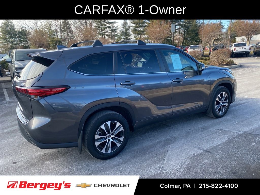 Recent Arrival! Clean Carfax. Carfax One-Owner. 2023 Dark Gray Metallic Toyota Highlander AWD 2.4L I4 PDI Turbocharged DOHC 16V LEV3-SULEV30 265hp 8-Speed Automatic. Bergey's is not responsible for typographical errors.