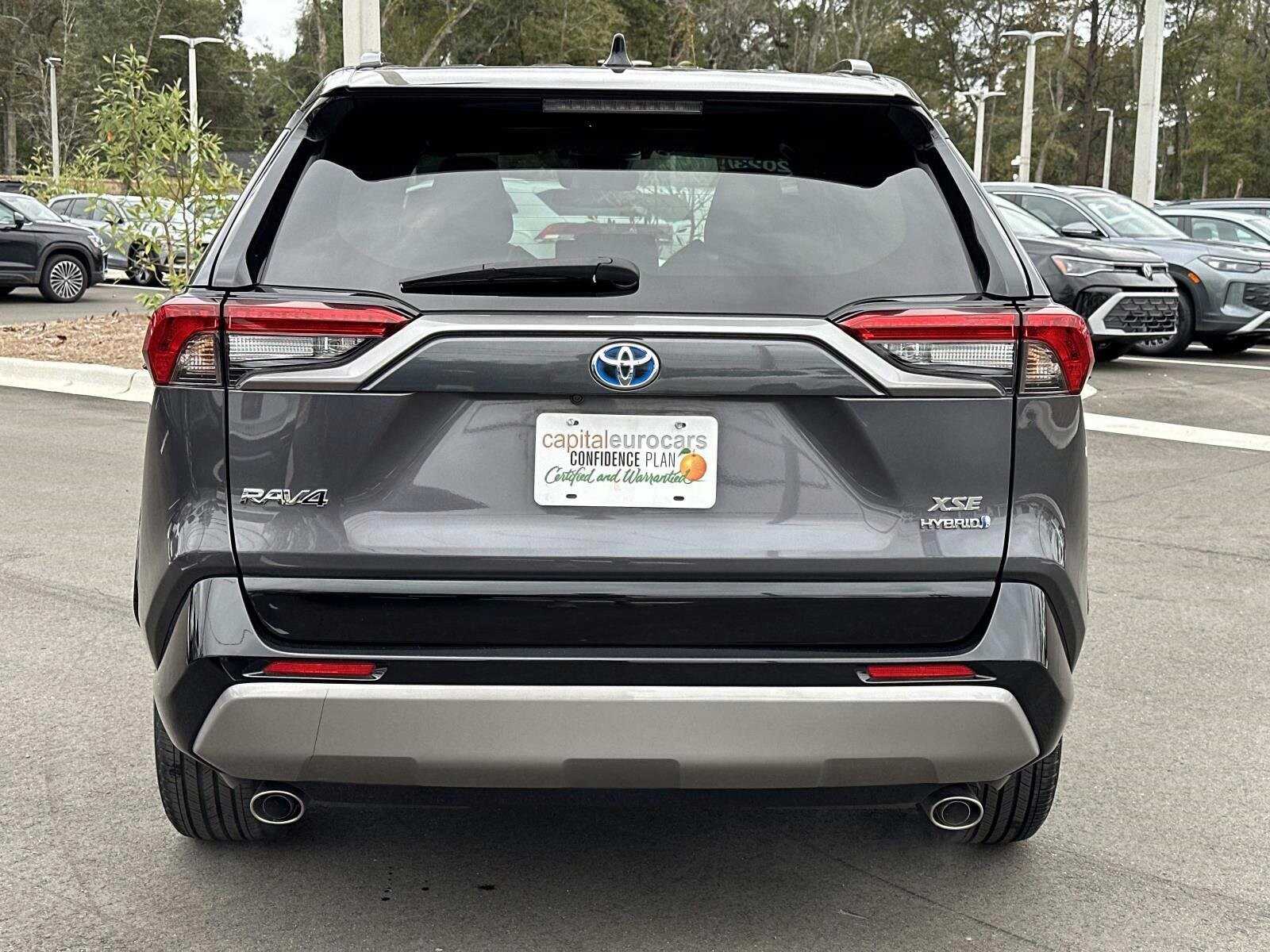Recent Arrival! Capital Confidence Plan Used Car Guarantee Certified, 2.5L 4-Cylinder, 4-Wheel Disc Brakes, 6 Speakers, ABS brakes, Air Conditioning, Alloy wheels, AM/FM radio: SiriusXM, Auto High-beam Headlights, Auto-dimming Rear-View mirror, Automatic temperature control, Axle Ratio: TBD, Brake assist, Bumpers: body-color, Delay-off headlights, Driver door bin, Driver vanity mirror, Dual front impact airbags, Dual front side impact airbags, Electronic Stability Control, Emergency communication system: Safety Connect (1-year trial), Four wheel independent suspension, Front anti-roll bar, Front Bucket Seats, Front Center Armrest, Front dual zone A/C, Front reading lights, Fully automatic headlights, Garage door transmitter: HomeLink, Heated door mirrors, Heated Front Seats, Heated front seats, Illuminated entry, Knee airbag, Lane Departure Warning System, Leather Shift Knob, Low tire pressure warning, Occupant sensing airbag, Outside temperature display, Overhead airbag, Overhead console, Panic alarm, Passenger door bin, Passenger vanity mirror, Power door mirrors, Power driver seat, Power Liftgate, Power moonroof, Power steering, Power windows, Radio data system, Radio: AM/FM/XM Audio System, Rear anti-roll bar, Rear seat center armrest, Rear window defroster, Rear window wiper, Remote keyless entry, Security system, SofTex Seat Trim, Speed control, Speed-sensing steering, Split folding rear seat, Spoiler, Steering wheel mounted audio controls, Telescoping steering wheel, Tilt steering wheel, Traction control, Trip computer, Turn signal indicator mirrors, Variably intermittent wipers, Wheels: 18" x 7.0J Black-Painted Aluminum Alloy. CARFAX One-Owner. Clean CARFAX. Magnetic Gray Metallic 4D Sport Utility 2023 Toyota RAV4 Hybrid XSE 2.5L 4-Cylinder AWD. Certified. Certification Program Details: All services performed on this vehicle are included in our online price. Also included is our Capital Confidence Plan; which encompasses our exclusive 101 point safety inspection, Carfax vehicle history report, 100,000 mile powertrain warranty for as long as you own your car, and our exclusive peace of mind 7 day or 500 mile exchange policy. Our “no hassle, no games” pricing policy means that you receive a Highly Competitive, Unquestionably Fair price on every vehicle, every day.