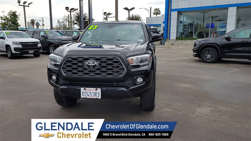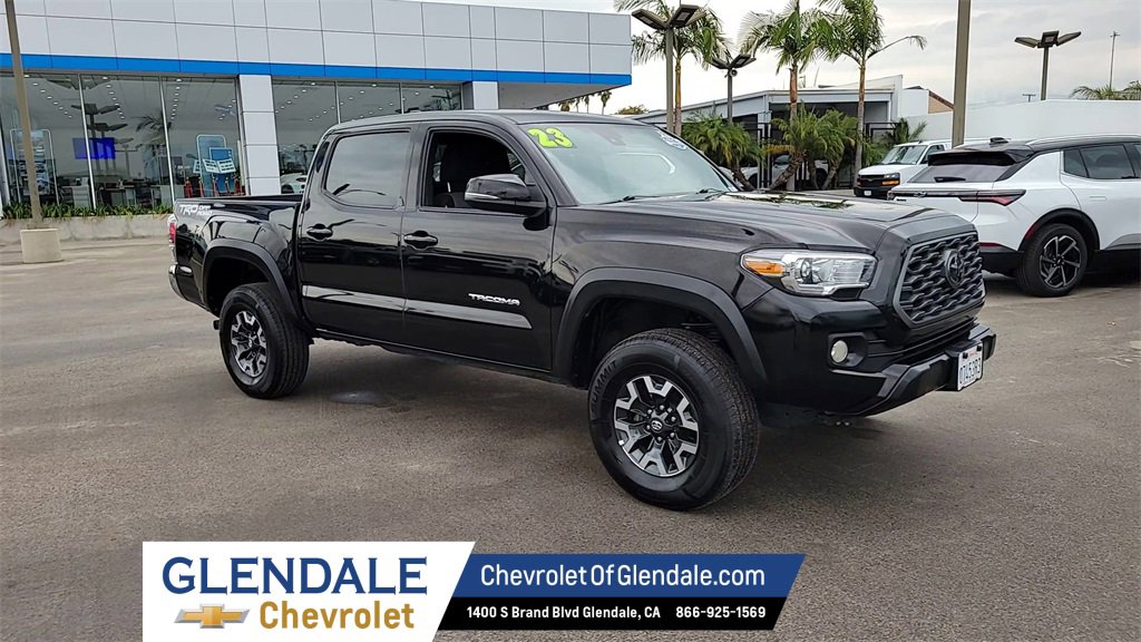 CARFAX One-Owner. Black 2023 Toyota Tacoma TRD Sport 4D Double Cab V6 RWD 6-Speed Automatic 3.5L V6 120V/400W Deck Mounted AC Power, Apple CarPlay/Android Auto, Color-Keyed Rear Bumper, Engine Immobilizer, TRD Sport Package. Why Buy from Glendale Chevrolet? Buying a car in Los Angeles can feel overwhelming fast responses, but rarely the right information. At Glendale Chevrolet, we do things differently. Under new ownership, our team is built around accuracy, honesty, and accountability from your first interaction to the moment you drive home. We provide: Verified availability checked by real managers Transparent, upfront pricing with no hidden fees A relaxed, zero-pressure experience Fast, consistent communication Access to inventory across Southern California if we don’t have your exact match We’re not the biggest store in LA we’re the store that treats you the best. A better Chevy experience starts right here at Glendale Chevrolet.