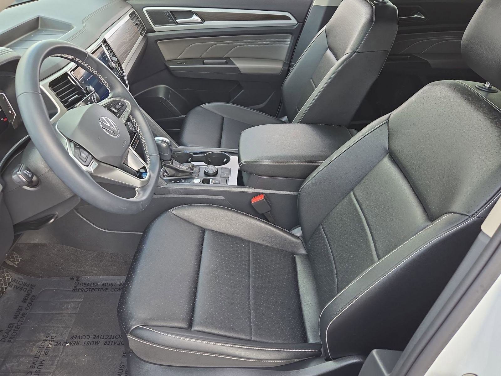 Low-mileage 2023 Volkswagen Atlas with just 14,886 miles, offering a great balance of space, comfort, and capability in a modern three-row SUV. This Atlas is equipped with all-wheel drive and a factory tow hitch, making it well suited for year-round driving conditions and light towing needs. The exterior is clean and contemporary with LED headlights featuring auto-leveling, fog lamps, rain-sensing wipers, privacy glass, aluminum wheels, and a hands-free power liftgate that adds everyday convenience. Inside, the cabin is spacious and thoughtfully designed with seating for up to seven, premium synthetic upholstery, heated front seats, and a power-adjustable driver's seat with lumbar support. Multi-zone automatic climate control with rear air conditioning keeps passengers comfortable in all three rows, while woodgrain interior trim gives the interior a refined feel. Technology features include a touchscreen infotainment system with Bluetooth connectivity, HD Radio, satellite radio capability, WiFi hotspot capability, smart device integration, steering wheel audio controls, and remote engine start. Safety and driver assistance features include adaptive cruise control, blind spot monitoring, rear cross-traffic alert, front and rear collision mitigation, rear parking sensors, and a backup camera to help with daily driving and parking. With its low miles, strong safety technology, and versatile all-wheel-drive capability, this 2023 Volkswagen atlas is an excellent option for families or anyone needing space and confidence on the road.