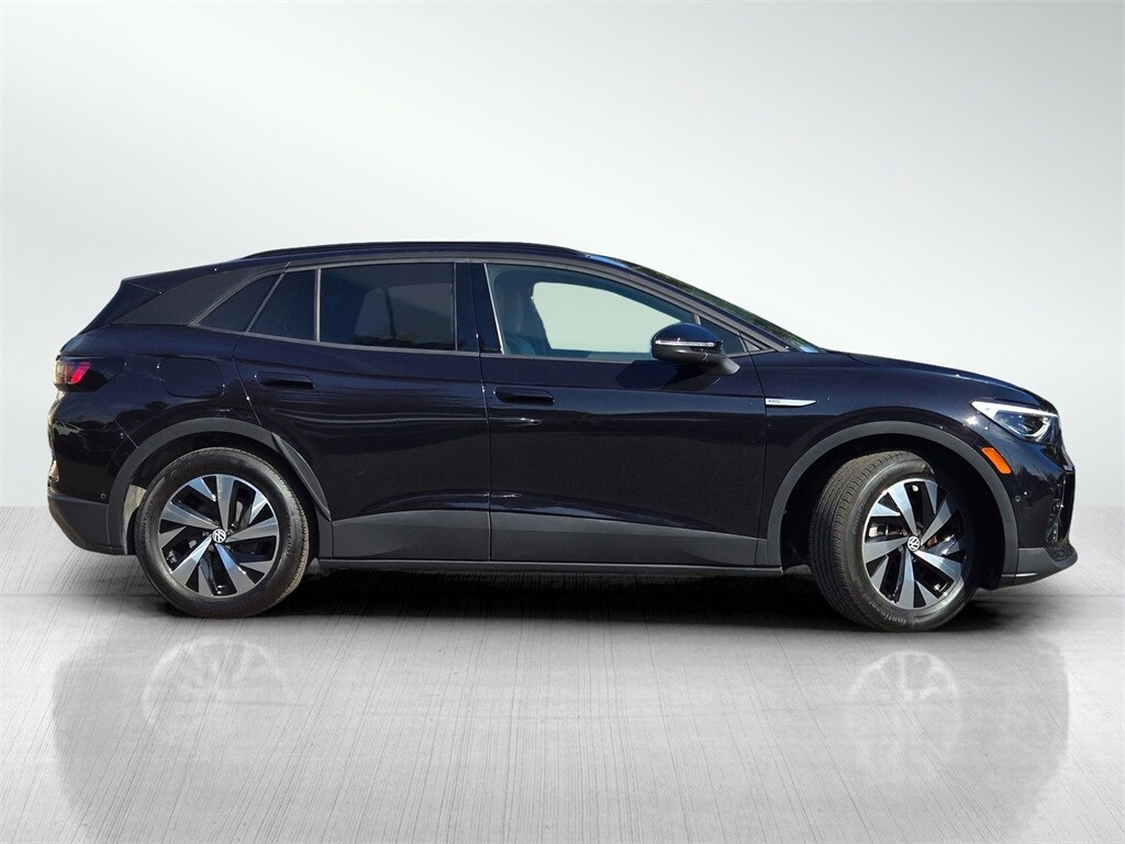 Deep Black 2023 Volkswagen ID.4 Pro 4D Sport Utility RWD Electric Motor Single-Speed Automatic 2-in-1 (240V/120V) EV Charging Cable, 4.39 Axle Ratio, 7 Speakers, ABS brakes, Air Conditioning, Auto-Dimming Rearview Mirror with HomeLink Connect, Charging & Interior Protection Package, Cloth Seating Surfaces, Driver vanity mirror, Dual front side impact airbags, Electronic Stability Control, EV Roadside Assistance Kit, Exterior Parking Camera Rear, First Aid Kit, Four wheel independent suspension, Front dual zone A/C, Front reading lights, Heated Front Seats, Heavy Duty Trunk Liner with VW CarGo Blocks, Low tire pressure warning, Navigation System, Outside temperature display, Overhead airbag, Passenger seat mounted armrest, Power windows, Radio data system, Rear reading lights, Rear window defroster, Rear window wiper, Remote keyless entry, Rubber Mats Kit, Split folding rear seat, Traction control, Trip computer, VW Care, Wheels: 19" 2-Tone Machined Alloy. Odometer is 10177 miles below market average!