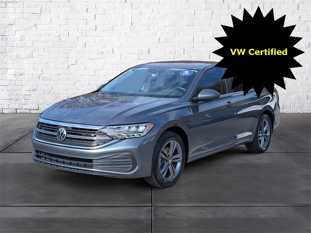Certified. Platinum Gray Metallic 2023 Volkswagen Jetta 1.5T SE FWD 8-Speed Automatic with Tiptronic 1.5L I-4 DI DOHC Turbocharged Local Trade. Recent Arrival! 29/40 City/Highway MPG. Volkswagen Certified Pre-Owned Details: 100+ Point Inspection, Warranty Deductible: $50, Vehicle History, Roadside Assistance, Model Year 2020 and Newer Vehicles: 2-Year or 24,000-Mile (whichever occurs first) Comprehensive Limited Warranty. Model Year 2019 Vehicles: 1-Year or 12,000-Mile (whichever comes first) Comprehensive Limited Warranty. Electric Vehicles Model Year 2019 & Newer: 3-Year or 36,000-Mile (whichever comes first) Comprehensive Limited Warranty. 2 Years of 24-Hour Roadside Assistance, Three Months of SiriusXM Platinum Plan Trial Subscription.