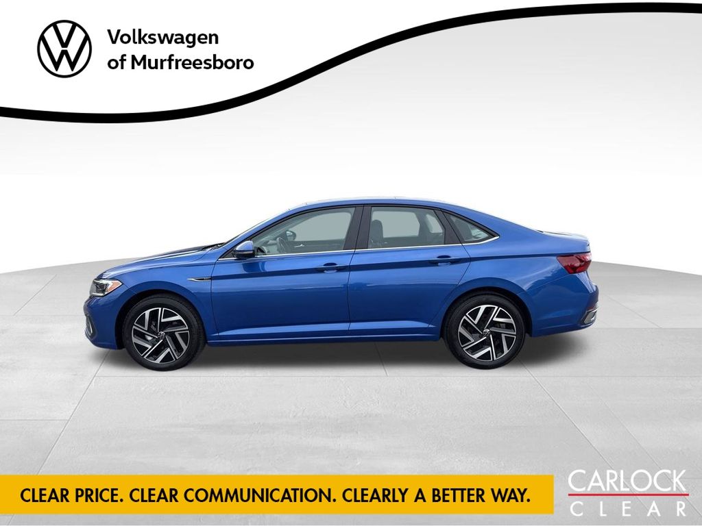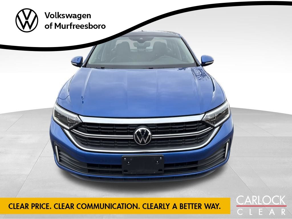 Discover the 2023 Volkswagen Jetta 1.5T SEL, a sophisticated and well-equipped sedan that combines style, performance, and advanced technology. With its striking blue exterior, this Jetta delivers a captivating presence on the road. Tailored to meet your needs, this Jetta comes equipped with an impressive array of features, including: - Navigation System - 9 Speakers - Panoramic Moonroof - Heated and Ventilated Front Seats - Leather Seat Trim - Blind Spot Monitoring - and much more. Under the hood, the 1.5L I-4 DI DOHC Turbocharged engine paired with an 8-Speed Automatic with Tiptronic transmission provides a smooth and responsive driving experience, while the Front-Wheel Drive configuration ensures confident handling. With an impressive 29 MPG in the city and 40 MPG on the highway, this Jetta offers exceptional fuel efficiency to keep you on the road longer. Designed with your comfort and convenience in mind, the Jetta's interior features dual-zone automatic climate control, a heated steering wheel, and a state-of-the-art infotainment system with an 8-inch touchscreen display. The panoramic moonroof floods the cabin with natural light, creating an open and airy atmosphere. Safety is also a top priority, with features like Active Blind Spot Monitor, Front and Rear Parking Sensors, and a Rearview Camera to help you navigate with confidence. The Jetta's advanced airbag system and Electronic Stability Control provide added peace of mind on every journey. Whether you're commuting to the office, embarking on a road trip, or simply enjoying the daily drive, the 2023 Volkswagen Jetta 1.5T SEL is the perfect companion. Its blend of style, performance and technology makes it a standout in the compact sedan segment. We invite you to experience the 2023 Volkswagen Jetta 1.5T SEL firsthand. Schedule a test drive today and discover the perfect balance of sophistication and practicality that this remarkable vehicle has to offer.