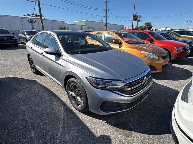 Experience sophisticated driving in this Silver 2023 Volkswagen Jetta 1.5T SE! Powered by a fuel-efficient 1.5L Turbo I4 engine paired with an 8-speed automatic transmission, this Jetta delivers a smooth and responsive ride. Enjoy advanced safety features like Front Automatic Emergency Braking, Pedestrian Detection, Lane Keeping Assist with Blind Spot Integration, and Rear Cross Traffic Alert. Stay connected with MIB3 Infotainment, Apple CarPlay, Android Auto, Amazon Alexa compatibility, and Car-Net smart device app functions. Comfort abounds with heated front seats, power-adjustable driver seat, leatherette upholstery, dual-zone automatic climate control, and a spacious interior. The Jetta's LED headlights, alloy wheels, and chrome window trim create a modern and attractive look. Additional highlights include adaptive cruise control, rain-sensing wipers, push-button start, and a rearview camera system. Discover reliability, comfort, and cutting-edge technology with this well-equipped Jetta SE-schedule your test drive today!