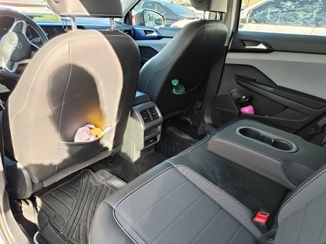 Certified. Pyrite Silver Metallic 2023 Volkswagen Taos 1.5T SE FWD 8-Speed Automatic with Tiptronic 1.5L I4 Turbocharged DOHC 16V LEV3-SULEV30 158hp Volkswagen Certified Pre-Owned Certified, 3.23 Axle Ratio, 4-Wheel Disc Brakes, 6 Speakers, ABS brakes, Active Blind Spot Monitor, Air Conditioning, Alloy wheels, AM/FM radio: SiriusXM with 360L, Auto High-beam Headlights, Brake assist, Bumpers: body-color, CloudTex & Cloth Seating Surfaces, Compass, Delay-off headlights, Driver door bin, Driver vanity mirror, Dual front impact airbags, Dual front side impact airbags, Electronic Stability Control, Emergency communication system: VW Car-Net Safe & Secure 5-year, Exterior Parking Camera Rear, Front anti-roll bar, Front Bucket Seats, Front Center Armrest, Front reading lights, Front Strut Rear Torsion Beam Suspension, Front wheel independent suspension, Fully automatic headlights, Heated door mirrors, Heated Front Comfort Seats, Heated front seats, Heated steering wheel, Illuminated entry, Leather Shift Knob, Low tire pressure warning, Occupant sensing airbag, Outside temperature display, Overhead airbag, Overhead console, Panic alarm, Passenger door bin, Passenger vanity mirror, Power door mirrors, Power driver seat, Power steering, Power windows, Radio data system, Radio: MIB3 Composition Media AM/FM/HD, Rain sensing wipers, Rear anti-roll bar, Rear seat center armrest, Rear window defroster, Rear window wiper, Remote keyless entry, Roof rack: rails only, Security system, Speed control, Speed-sensing steering, Split folding rear seat, Spoiler, Steering wheel mounted audio controls, Tachometer, Telescoping steering wheel, Tilt steering wheel, Traction control, Trip computer, Variably intermittent wipers, Wheels: 18 2-Tone Machined Alloy. Recent Arrival! 28/36 City/Highway MPG Volkswagen Certified Pre-Owned Details: Vehicle History * Warranty Deductible: $50 * Roadside Assistance * Model Year 2020 and Newer Vehicles: 2-Year or 24,000-Mile (whichever occurs first) Comprehensive Limited Warranty. Model Year 2019 Vehicles: 1-Year or 12,000-Mile (whichever comes first) Comprehensive Limited Warranty. Electric Vehicles Model Year 2019 & Newer: 3-Year or 36,000-Mile (whichever comes first) Comprehensive Limited Warranty. 2 Years of 24-Hour Roadside Assistance, Three Months of SiriusXM Platinum Plan Trial Subscription. * 100+ Point Inspection.
