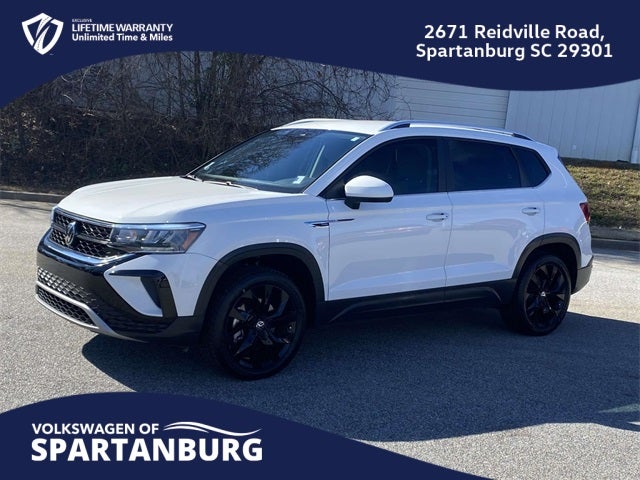 Recent Arrival! Certified. Carfax One-Owner. Clean Carfax. Pure White 2023 Volkswagen Taos 1.5T SE FWD 8-Speed Automatic with Tiptronic 1.5L I4 Turbocharged DOHC 16V LEV3-SULEV30 158hp. Carfax 1-Owner, Clean Carfax, Lifetime Powertrain Warranty, Active Blind Spot Monitor, Alloy wheels, Auto High-beam Headlights, Black Wheel Package, Exterior Parking Camera Rear, Fully automatic headlights, Heated steering wheel, Rain sensing wipers, Wheels: 18 Black Painted Alloy. Welcome to the All-New Volkswagen of Spartanburg! We are excited to introduce our latest lineup of Volkswagen vehicles and quality pre-owned options of all makes and models. At Volkswagen of Spartanburg, we are committed to providing exceptional customer service. Our knowledgeable and friendly sales team is ready to assist you in finding the perfect vehicle that fits both your lifestyle and budget. We are dedicated to ensuring that your car-buying journey is seamless and enjoyable from start to finish. Visit us today at Volkswagen of Spartanburg: Come in and see for yourself why we are the leading Volkswagen dealership in the area: 2671 Reidville Rd, Spartanburg, SC 29301 or call us at (864) 585-2496. We look forward to welcoming you and helping you drive away in your dream car!