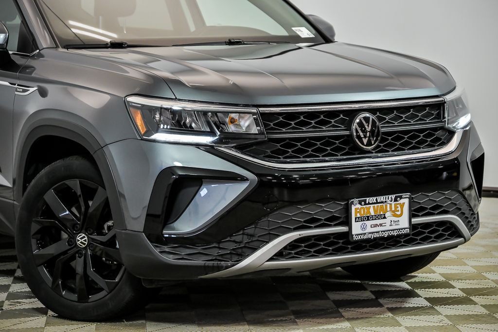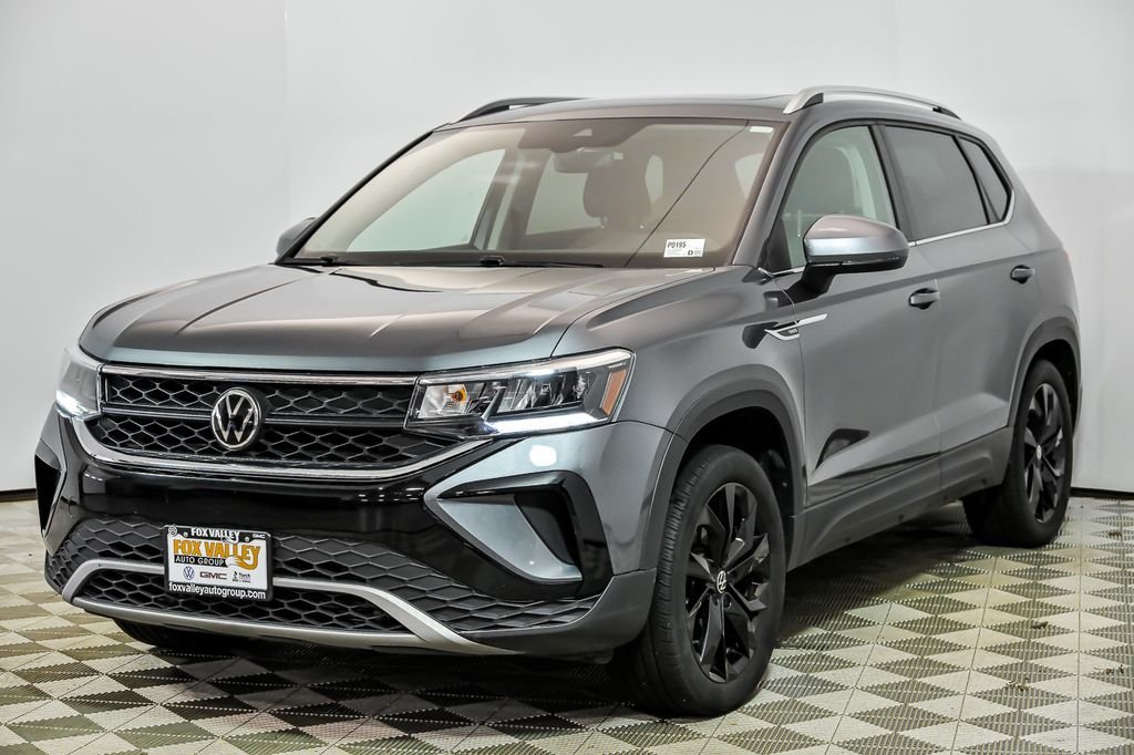 Apple CarPlay/Android Auto, Heated Steering Wheel, Panoramic Roof / Sunroof, Taos 1.5T SE. Recent Arrival! CARFAX One-Owner. Clean CARFAX. Certified. Odometer is 2364 miles below market average! Platinum Gray Metallic 2023 Volkswagen Taos 4D Sport Utility 1.5T SE 1.5L I4 Turbocharged DOHC 16V LEV3-SULEV30 158hp 25/32 City/Highway MPG 7-Speed DSG Automatic with Tiptronic AWD. Fox Valley Volkswagen never charges additional fees or products to our pricing. We have a transparent approach to the car buying experience. The price you see is the price you pay. Call us at (630) 231-9900 to check availability or to schedule a test drive! Fox Valley Volkswagen offer out of state transaction services such as license & registration, transportation, notary services and hotel accommodations! We never charge additional fees for any of our VW Certified vehicles. All Certified VW warranties & benefits are always included in the price you see. We include a free oil change and free car washes for life with every preowned vehicle as well as. Exclusions apply. Fox Valley Volkswagen prepare to be moved 4050 E Main Street St. Charles, IL 60174 (630)231-9900 www.foxvalleyvw.com.