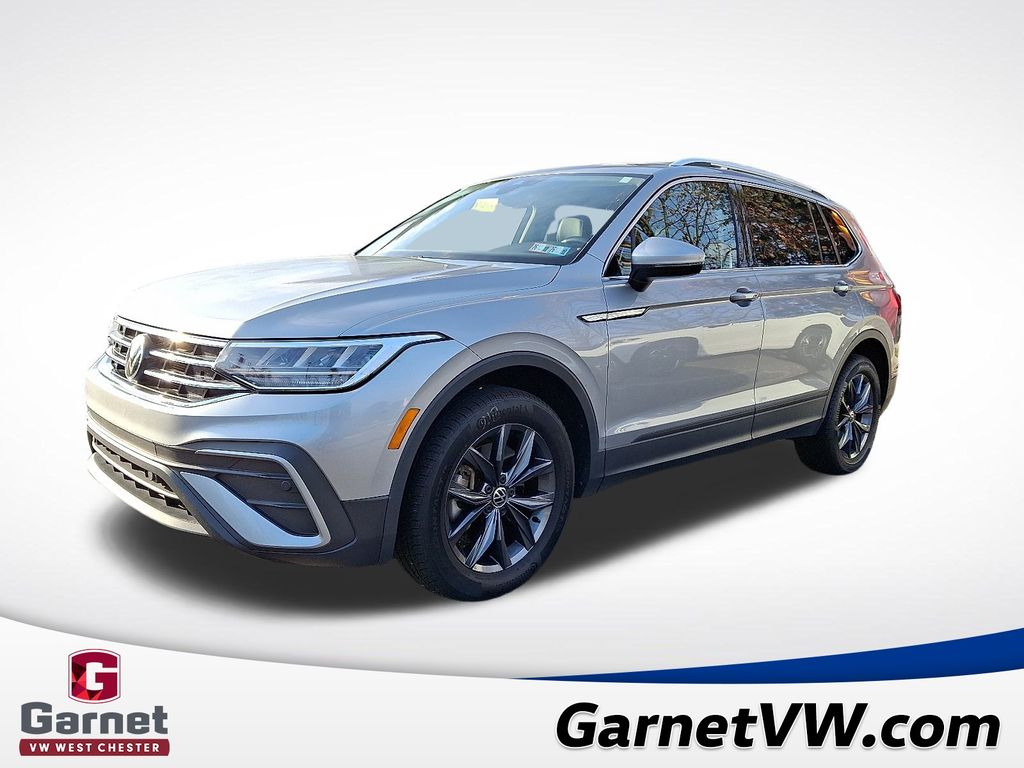 The 2023 Volkswagen Tiguan 2.0T SE is a versatile and well-equipped SUV that offers an exceptional driving experience. With its sleek silver exterior and a host of advanced features, this Certified Pre-Owned Tiguan is the perfect choice for those seeking a sophisticated and capable vehicle. The Tiguan's 2.0L TSI DOHC engine, paired with an 8-Speed Automatic with Tiptronic and All-Wheel Drive, delivers a dynamic and responsive performance, with an impressive fuel efficiency of 22 MPG in the city and 29 MPG on the highway. As a Volkswagen Certified Pre-Owned vehicle, this Tiguan has undergone a rigorous 100+ point inspection and comes with a comprehensive warranty and roadside assistance program. You can rest assured that this SUV has been meticulously maintained and is ready to provide you with years of reliable and enjoyable driving. The spacious and well-appointed interior of the Tiguan offers ample room for passengers and cargo, making it an ideal choice for families or those with an active lifestyle. The split-folding rear seat and power liftgate add to the vehicle's versatility, ensuring you can easily accommodate your needs. With its sleek design, advanced technology, and exceptional performance, the 2023 Volkswagen Tiguan 2.0T SE is a standout in the competitive SUV market. Experience the difference for yourself and schedule a test drive today.
