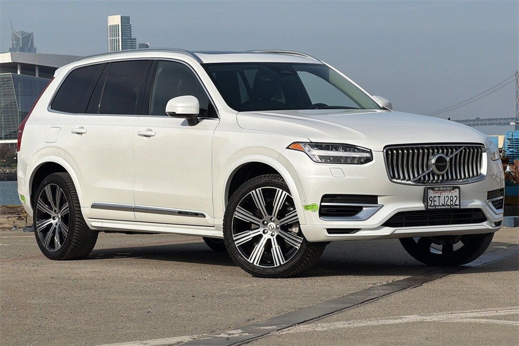 Recent Arrival! Certified. Crystal White 2023 Volvo XC90 Recharge Plug-In Hybrid T8 Plus Bright Theme 7 Passenger AWD. CARFAX One-Owner. Odometer is 9748 miles below market average! Certified. Priced below KBB Fair Purchase Price! Volvo Certified Pre-Owned Details: Vehicle History, Limited Warranty: 12 Month/Unlimited Mile Upgradeable Up to 5 Years and Up to Unlimited Miles. 170+ Point Inspection. 1-Year complimentary Volvo On Call app. Remote climate control, locks, fuel, maintenance & driving journal. Vehicle History Report with Buyback Guarantee. Includes Trip Interruption Reimbursement. Every Certified by Volvo Fully Electric & Plug-in Hybrid Comes With an 8-Year/100,000-Mile Battery Warranty. Transferable Warranty. Roadside Assistance. Warranty Deductible: $0. The Royal Motor Sales dealerships began in 1947, when Walter Anderson started a body shop and opened a pre-owned car sales center in San Francisco, CA. Walter Anderson, In 1956, acquired the Volvo franchise. Royal was one of the first Volvo dealers in the country. Royal Auto Group now has four automotive dealerships and a state of the art collision center in San Francisco. The dealership franchises include: Audi, VW, Volvo, and Mazda. In 2020, the valued team members at Royal sold over 4,000 new and pre-owned cars and serviced more than 40,000. Our company history reinforces the importance of the cornerstone foundations of our business and success, which are: Integrity, Efficiency, Hard Work, Customer Service, and Loyalty. They are our trademarks!