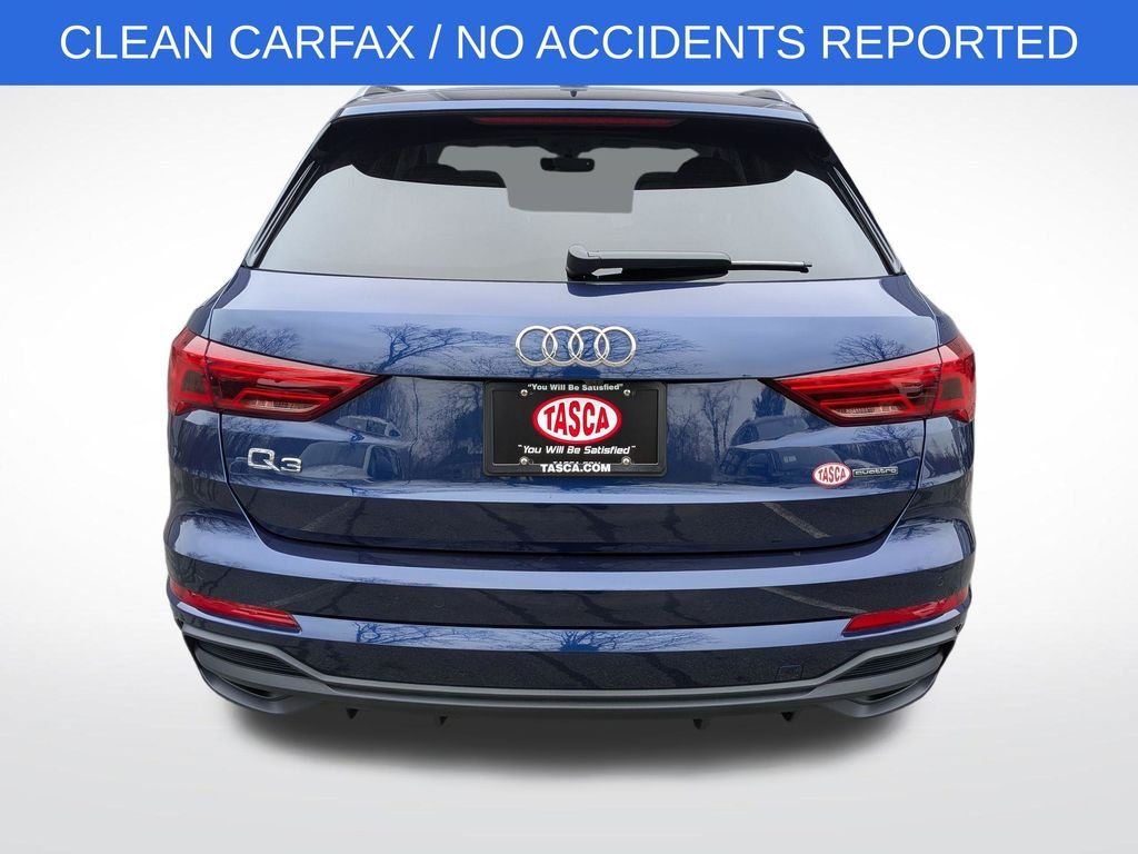 Certified. Blue 2024 Audi Q3 Premium S Line quattro Premium S Line quattro quattro 8-Speed Automatic with Tiptronic 2.0L 4-Cylinder TFSI Audi factory certified, one owner, clean Carfax / no accidents reported, all wheel drive, back up camera, Bluetooth/hands free/cell phone, automatic emergency braking, forward collision warning, blind spot warning alert, rear cross traffic alert, leather seats, heated front seats, Apple Car-Play/Android Auto, moonroof/sunroof, alarm w/motion sensor, Audi Advanced Key, Auto-Dimming Power-Folding Exterior Mirrors, Auto-Dimming Rear-View Mirror, Brown Gray Natural Wood Inlay, Convenience Package, Driver Seat Memory, Garage Door Opener (HomeLink), LED Interior Lighting Package, SiriusXM, Wireless Phone Charging Pad. 20/28 City/Highway MPG Clean Carfax. Carfax one-owner. Buy with confidence from Tasca Automotive Group. Backed by a family-owned legacy of exceptional service and large dealer network, we’re committed to delivering a premium experience every step of the way. You will be satisfied!
