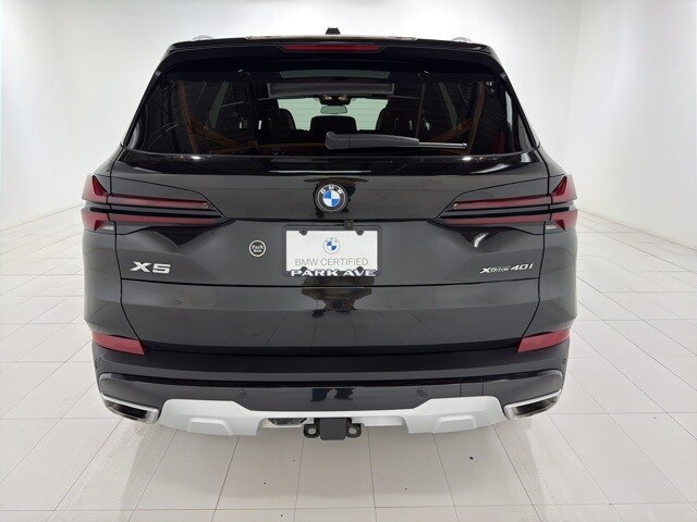 Certified Pre-Owned specials! Every Certified Pre-Owned BMW has coverage for up to 5 years or Unlimited Miles! This 2024 BMW X5 xDrive40i has a Black Sapphire Metallic exterior with a Coffee Sensafin interior! Balance of new car warranty, good to 05/05/2027 or 50,000 miles, whichever comes first. Balance of CPO warranty, good to 05/05/2028 or Unlimited Miles, whichever comes first. Options include Premium Package, Remote Engine Start, Adaptive Full LED Lights, Harman Kardon surround sound, Live Cockpit Pro (including navigation), Gesture Control, Climate Comfort Package, Front ventilated seats, Front and Rear Heated Seats, 4-zone climate control, Parking Assistance Package, Parking Assistant Professional, Active Park Distance Control, Parking View with 3D View (Surround), additional options such as 20" V-Spoke wheels with aluminum, tire pressure monitor, universal garage-door opener, Comfort Access keyless entry, Trailer Hitch, Satin aluminum exterior trim, Privacy glass, Multi-contour seats, Travel and Comfort System, Brown Poplar Wood Trim, Acoustic Protection.