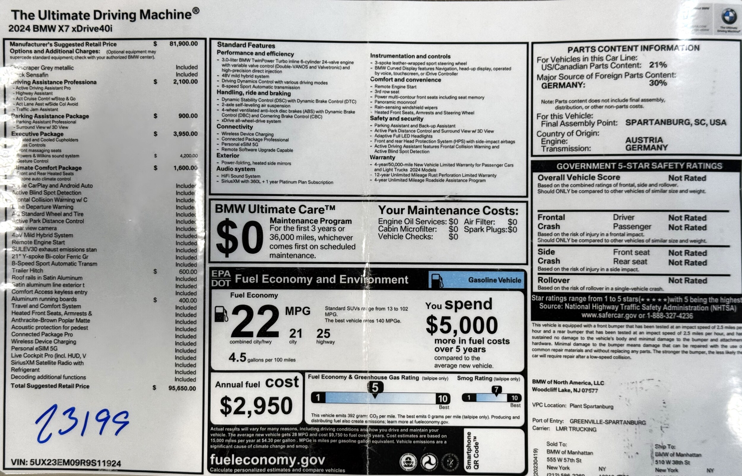 ORIGINAL MSRP $95,650.00. Still under full factory warranty until 04/21/2027 or 50,000 miles. Whichever comes first. Clean Carfax report. We are the only dealer in the Eastern United States that guarantees in writing that all our Certified vehicles have no frame damage and no body panel replacements. Several more to choose from as well. We can arrange to ship your car Nationwide. Please contact us for more details. All prices are subject to change without prior notice and are exclusive of any State or County fees and taxes for all buyers, in state and out. There will be fees applied to your final purchase price along with a Processing Fee of $995.00. (Not required by law).