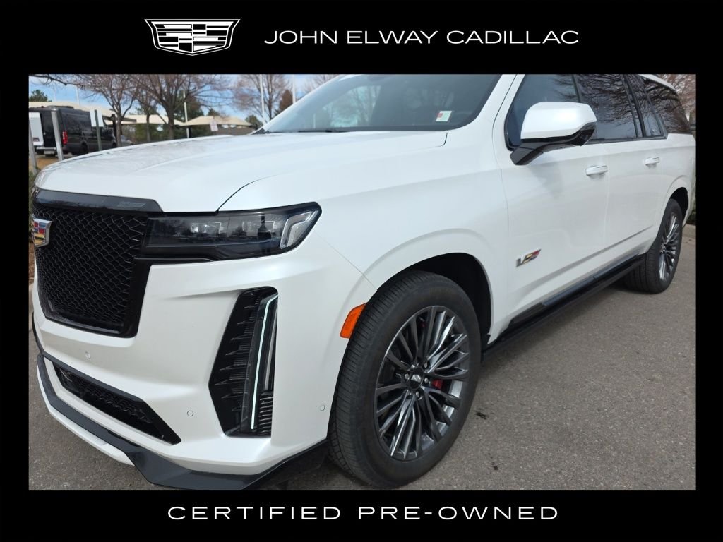 Cadillac Certified Pre Owned, 2024 Cadillac Escalade ESV V-Series, Exterior: Crystal White, Interior: Black Leather, Escalade ESV V-Series, 4D Sport Utility, 6.2L V8 Supercharged, 10-Speed Automatic with Overdrive, AWD, Crystal White, Black Leather, Active Noise Cancellation, Adaptive Cruise Control, Air Ride Adaptive Suspension, AKG Studio Reference 36-Speaker Audio System, Automatic Seat Belt Tightening, Black Roof Rack Cross Rails, Body-Color Door Handles, Cargo Convenience Package, Door Lock & Latch Shields, Electronic Limited-Slip Differential, Enhanced Automatic Emergency Braking, Enhanced Automatic Parking Assist, Floor Console w/Covered Storage, Front Auxiliary 12-volt Power Outlet, Glass Breakage Sensor, Heated & Ventilated Driver & Front Passenger Seats, Heavy-Duty Trailering Package, Hitch Guidance w/Hitch View, Illuminating Front & Rear Sill Plates, Integrated Trailer Brake Controller, Magnetic Ride Control Suspension, Navigation System, Platinum Interior Trim, Power Lumbar Massage Driver Seat, Power Lumbar Massage Front Passenger Seat, Power Panoramic Tilt-Sliding Sunroof, Power-Retractable Assist Steps, Preferred Equipment Group 1SD, Rear Camera Mirror, Rear Camera Mirror Washer, Rear Cargo Shade (LPO), Rear Cross Traffic Alert, Rear Seat Entertainment System, Reconfigurable Full-Color Head-Up Display, Reverse Automatic Braking, Smart Trailer Integration Indicator, Soft Closing Closing. The vehicle has passed a 172-point factory inspection and meets Cadillac’s strict standards for quality. Includes a 1-Year / Unlimited-Mile Cadillac CPO Limited Warranty. The vehicle has passed a 172-point factory inspection and meets Cadillac’s strict standards for quality. Includes a 1-Year / Unlimited-Mile Cadillac CPO Limited Warranty. The vehicle has passed a 172-point factory inspection and meets Cadillac’s strict standards for quality. Includes a 1-Year / Unlimited-Mile Cadillac CPO Limited Warranty. Financing Advantage: Because Cadillac Certified Pre-Owned vehicles meet manufacturer certification standards. The vehicle has passed a 172-point factory inspection and meets Cadillac’s strict standards for quality. Includes a 1-Year / Unlimited-Mile Cadillac CPO Limited Warranty. Financing Advantage: Because Cadillac Certified Pre-Owned vehicles meet manufacturer certification standards. Lenders often offer special APR programs and extended financing terms compared to non-certified pre-owned vehicles—giving qualified buyers access to more competitive rates and flexible payment options. The John Elway Cadillac Difference: Enjoy a non-commissioned customer-first buying experience plus Concierge Pick-Up & Drop-Off Service for added convenience. As an authorized GM & Cadillac lease return center. We can also assist with lease returns for Cadillac.