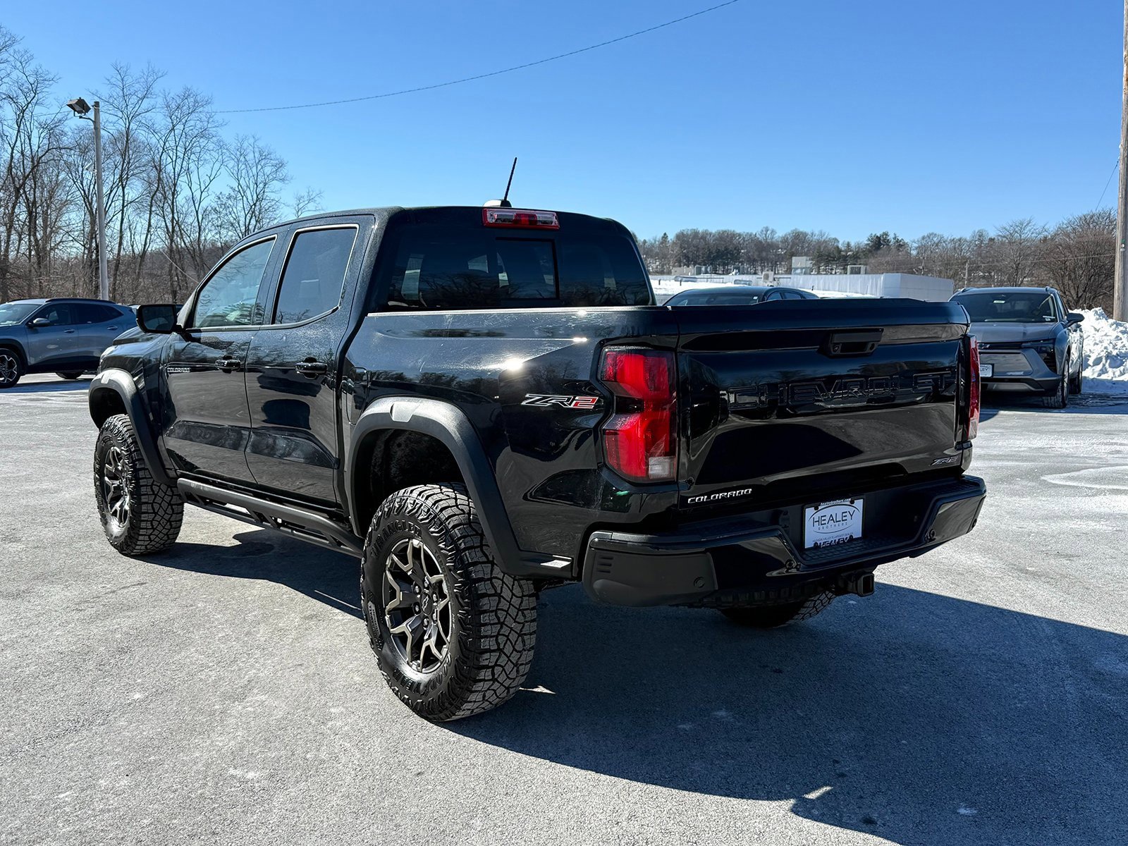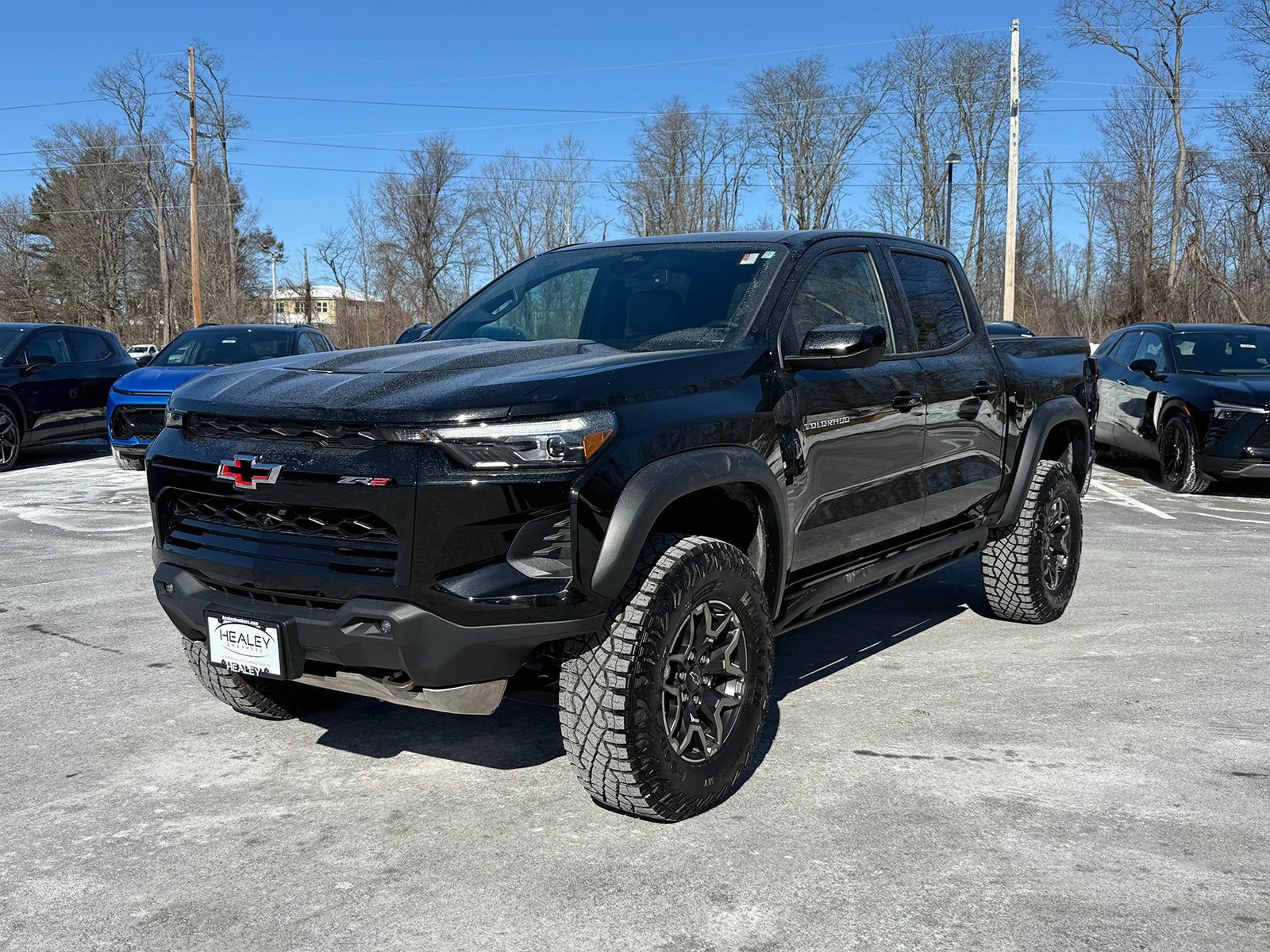 Certified. Black 2024 Chevrolet Colorado ZR2 4WD 8-Speed Automatic 2.7L I4 Turbocharged DOHC 16V LEV3-ULEV50 310hp 3.42 Rear Axle Ratio, 4-Way Manual Passenger Seat Adjuster, 4-Wheel Disc Brakes, 6 Speakers, 6-Speaker Audio System Feature, 8-Way Power Driver Seat Adjuster, ABS brakes, Adaptive Cruise Control, Air Conditioning, Alloy wheels, AM/FM radio: SiriusXM, Apple CarPlay/Android Auto, Auto High-beam Headlights, Auto-dimming Rear-View mirror, Automatic Emergency Braking, Automatic temperature control, Blind Zone Steering Assist with Trailering, Bose Premium 7-Speaker Audio System Feature, Brake assist, Chevy Safety Assist, Cloth/Evotex Seat Trim, Compass, Delay-off headlights, Driver & Front Passenger Ventilated Seats, Driver door bin, Driver Memory Settings, Driver Seatback Map Pocket, Driver vanity mirror, Dual front impact airbags, Dual front side impact airbags, Electronic Automatic Cruise Control, Electronic Stability Control, Following Distance Indicator, Forward Collision Alert, Front anti-roll bar, Front Bucket Seats, Front Center Armrest, Front dual zone A/C, Front fog lights, Front License Plate Kit, Front Passenger Seatback Map Pocket, Front Pedestrian & Bicyclist Braking, Front reading lights, Front wheel independent suspension, HD Surround Vision, Heated door mirrors, Heated Driver & Front Passenger Seats, Heated front seats, Heated Steering Wheel, Illuminated entry, IntelliBeam Automatic High Beam On/Off, Lane Keep Assist with Lane Departure Warning, Low tire pressure warning, Navigation System, Occupant sensing airbag, Outside temperature display, Overhead airbag, Overhead console, Panic alarm, Passenger door bin, Passenger vanity mirror, Perforated Leather-Appointed Seat Trim, Power door mirrors, Power Driver Lumbar Control Seat Adjuster, Power driver seat, Power Sliding Glass with Manual Shade Sunroof, Power steering, Power windows, Preferred Equipment Group 4ZR, Radio data system, Radio: 11.3 Diagonal Advanced Color LCD Display, Rear Center Armrest, Rear Cross Traffic Braking, Rear Park Assist, Rear Pedestrian Alert, Rear reading lights, Rear step bumper, Rear window defroster, Rear-Window Electric Defogger, Remote keyless entry, Safety Package, Security system, SiriusXM Radio, Speed control, Speed-sensing steering, Split folding rear seat, Steering Wheel Mounted Audio Controls, Steering wheel mounted audio controls, Tachometer, Tech Bronze Recovery Hooks (LPO), Technology Package, Telescoping steering wheel, Tilt steering wheel, Traction control, Trip computer, Underbody Cameras.