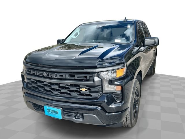 Thank you for considering Seguin Chevrolet for your automotive needs. We strive to exceed our customers expectation with a genuine approach to customer service. Our experienced sales staff can help you find the perfect vehicle to fit your needs and provide competitive financing. If money is a main consideration for your next car, you may want to check out our inventory of used vehicles. While we naturally carry used Chevy vehicles, we may also have cars in stock for sale used by other automakers. Therefore, no matter what kind of car you're looking for, check our website first or call to see what's in stock. We might have the car you want at the price you want, but it's best to act soon to ensure the car you hope to buy isn't sold before you buy it. CARFAX One-Owner. Clean CARFAX. Certified. Black 2024 Chevrolet Silverado 1500 Custom RWD 8-Speed Automatic 2.7L I4 Turbocharged DOHC 16V LEV3-SULEV30 310hp Silverado 1500 Custom, 4D Crew Cab, 2.7L I4 Turbocharged DOHC 16V LEV3-SULEV30 310hp, 8-Speed Automatic, RWD, Black, Black Cloth, 10-Way Power Driver Seat w/Lumbar, 120-Volt Bed Mounted Power Outlet, 120-Volt Interior Power Outlet, 3.5 Monochromatic Display Driver Info Center, Bluetooth For Phone, Chevrolet Connected Access Capable, Color-Keyed Carpeting Floor Covering, Custom Convenience Package, Custom Value Package, Deep-Tinted Glass, Dual Rear USB Ports (Charge Only), Electric Rear-Window Defogger, Electrical Steering Column Lock, Electronic Cruise Control, EZ Lift Power Lock & Release Tailgate, Front Frame-Mounted Black Recovery Hooks, Front Rubberized Vinyl Floor Mats, HD Rear Vision Camera, High Capacity Suspension Package, Hitch Guidance, LED Cargo Area Lighting, Manual Tilt Wheel Steering Column, OnStar & Chevrolet Connected Services Capable, Power Front Windows w/Driver Express Up/Down, Power Front Windows w/Passenger Express Down, Power Rear Windows w/Express Down, Preferred Equipment Group 1CX, Rear 60/40 Folding Bench Seat (Folds Up), Rear Rubberized-Vinyl Floor Mats, Remote Keyless Entry, Remote Vehicle Starter System, SiriusXM Radio, Standard Tailgate, Theft Deterrent System (Unauthorized Entry), Trailering Package, Wi-Fi Hot Spot Capable. Recent Arrival! Odometer is 10307 miles below market average!