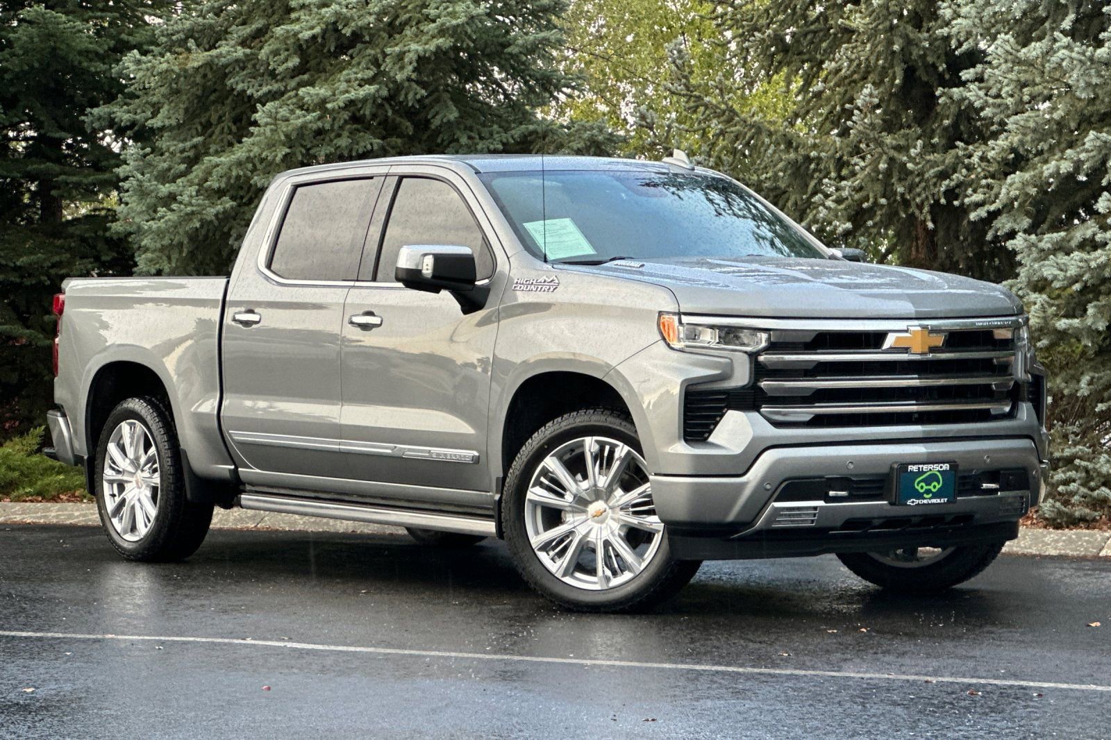 Recent Arrival! Odometer is 1536 miles below market average! Our One Owner, No Accidents Reported, Miles Below Market Average, Diesel powered 2024 Chevrolet Silverado 1500 High Country Crew Cab 4X4 Short Bed with the Premium II Pack is an uplevel adventure machine in Sterling Gray Metallic! Motivated by a TurboCharged 3.0 Liter DuraMax Diesel 6 Cylinder delivering 305hp and 495lb-ft of torque to a 10 Speed Automatic transmission. This Four Wheel Drive truck also boasts a 2-speed transfer case and high-capacity suspension for composed handling, and it sees nearly 27mpg on the highway. Style meets strength with a spray-on bedliner, LED fog lamps, a power-up/down tailgate, perimeter lighting, and the Premium II Pack's sunroof, power-retractable assist steps, and 22-inch wheels. You're in the command position in our High Country cabin with heated/ventilated leather power front and heated rear seats, a heated-wrapped power steering wheel, dual-zone automatic climate control, a power sliding rear window, and remote start. You can enjoy a high-tech cockpit with a 12.3-inch driver display, a 13.4-inch touchscreen, Google Built-in, WiFi compatibility, wireless Apple CarPlay/Android Auto, voice control, wireless charging, Bluetooth, and Bose audio. Stay safe as you work hard with Chevrolet's advanced features, including adaptive cruise control, a bed-view camera, trailer blind-spot monitoring, enhanced automatic braking, lane-keeping assistance, forward collision warning, pedestrian detection, HD Surround Vision, and more. It's time to raise the bar with our remarkable Silverado High Country! Save this Page and Call for Availability. We Know You Will Enjoy Your Peterson Chevrolet Test Drive