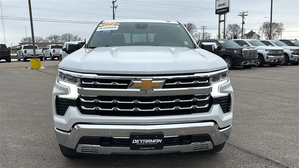 One owner local trade in! 2024 Chevrolet Silverado 1500 Crew Cab LTZ 4WD, power leather heated and ventilated front bucket seats, heated 2nd row outboard seats, heated & wrapped steering wheel with audio controls, auto locking rear differential, StabiliTrak with trailer sway control & hill start assist, trailering package with hitch guidance, trailer brake controller, remote start, forward collision alert, front pedestrian braking, lane keep assist with departure warning, HD surround vision, teen driver mode, trailer side blind zone alert, front & rear park assist, rear cross traffic braking, rear pedestrian alert, safety alert seat. CARFAX (Blind Spot Monitor, Moon Roof, Apple CarPlay, etc).