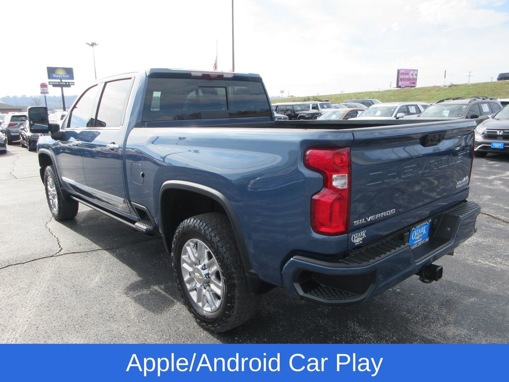 Remote Start, Sunroof/Moonroof, Heated Seats, Navigation, One-Owner, Apple/Android Car Play, Z 71 Package, Silverado 2500HD High Country, 4D Crew Cab, Duramax 6.6L V8 Turbodiesel, 10-Speed Automatic, 4WD, Lakeshore Blue Metallic, Jet Black/Umber Leather. Preferred Equipment Group 3LZ (120-Volt Bed Mounted Power Outlet, 120-Volt Interior Power Outlet, 170 Amp Alternator, 6 Rectangular Chromed Tubular Assist Steps, Auto-Dimming Inside Rear-View Mirror, Bed View Camera with 2 Trailer Camera Provisions, Black Chevytec Spray-On Bedliner, Bluetooth For Phone, Chevrolet Connected Access Capable, Chrome Door Handles, Chrome Mirror Caps, Color-Keyed Carpeting Floor Covering, Compass, Deep-Tinted Glass, Electric Rear-Window Defogger, Electronic Cruise Control with Set & Resume Speed, Front Carpeted Floor Mats, Front Chrome Recovery Hooks, Front LED Fog Lamps, Front Rain-Sensing Wipers, Heated 2nd Row Outboard Seats, Heated Steering Wheel and Apple CarPlay/Android Auto. This vehicle is a Certified Used Chevrolet Silverado with a Z71 Package. This vehicle is a Certified Used Chevrolet Silverado with a Z71 Package. This vehicle is a Used Chevrolet Silverado with a Z71 Package.