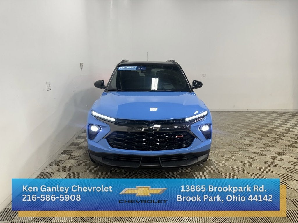 Certified. Fountain Blue 2024 Chevrolet TrailBlazer RS FWD CVT 1.3L Ecotec Turbo DOHC SIDI w/VVT. Accident Free CarFax History. For your peace of mind we have included over 50 photos, for you to judge the condition yourself. As you do your comparison shopping, you will see Ganley Chevrolet offers some of the best values in the market. We will provide you a Carfax, Comprehensive Vehicle Inspection, and how we arrived at the price. We may not be the lowest, but if you want to know who is, we will show you that too. Call or Stop by Ganley Chevrolet to schedule a test drive today. Serving the Greater Cleveland Area. Out of town buyer's free pick-up at the airport. We can help arrange delivery right to your front door too!