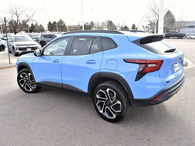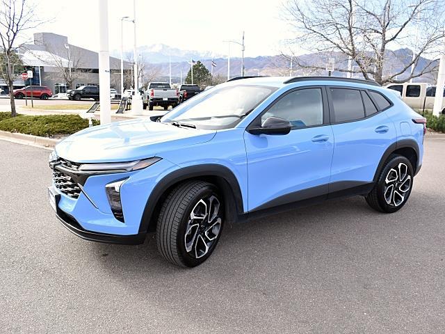 This Certified 2024 Chevrolet Trax 2RS, has a Fountain Blue exterior and a Jet Black with Red accents interior color. 36,621 miles. Stock Number N001695. You can connect with us by calling (719) 249-2703. **CERTIFIED PRE-OWNED** No Accidents! One Owner! Important Package and Feature Information Driver Confidence Package ($795 value)Adaptive Cruise ControlRear Park AssistRear Cross-Traffic AlertLane Change Alert with Side Blind Zone AlertPreferred Equipment Group 2RS Safety and Security Forward collision mitigation - Forward thinking. You look away for just a second and suddenly the vehicle in front of you has stopped. That's when the forward collision mitigation system comes to life. When it senses an impending impact, it will activate a combination of features to help prevent or reduce the severity of an accident. Forward collision mitigation is always looking ahead. Pedestrian impact prevention - An extra step toward safety. Pedestrians don't always stop, look, and listen, but with Pedestrian Impact Prevention, your vehicle is equipped to better see them and avoid them. This system constantly monitors the road ahead to identify and track pedestrians. It projects that image to an interior display screen, AND should an impact become likely, Pedestrian impact prevention takes steps to avoid a collision. Rear camera - Watching your back! The rear camera helps you see obstacles and hazards you otherwise couldn't by showing enhanced images of what is behind you. The rear camera is an extra set of eyes that's both convenient and safe. Technology and Telematics Wireless Apple CarPlay and wireless Android Auto smart device wireless mirroring Mobile hotspot - WiFi on the fly. Connect your devices to the Internet through your vehicles private mobile hotspot and take the internet wherever your journey takes you, without eating up your data allowance. Find the hotspot with mobile hotspot.