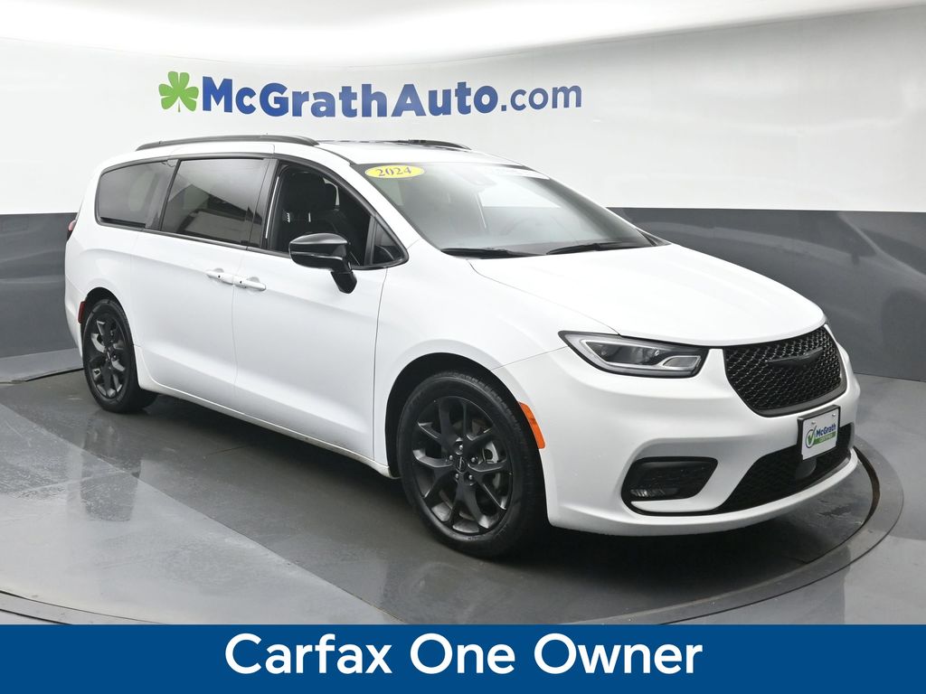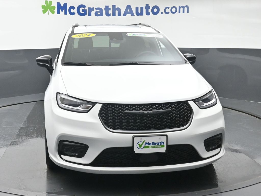 Experience the Pinnacle of Family Luxury with the 2024 Chrysler Pacifica Limited. Elevate your daily drives with the exceptional 2024 Chrysler Pacifica Limited. This captivating minivan offers an unparalleled blend of style, technology, and versatility, making it the ultimate choice for discerning families. Boasting a sleek and sophisticated exterior, the Pacifica Limited commands attention with its striking 20-inch S-Model Aluminum wheels, premium black grille, and bold badging. Step inside and be welcomed by the refined Nappa leather-trimmed interior, complete with heated and ventilated front seats and a panoramic sunroof for an airy, open-air experience. Powered by a robust 3.6L V6 engine mated to a smooth-shifting 9-speed automatic transmission, the Pacifica Limited delivers a dynamic and efficient performance, with an impressive 28 MPG on the highway. Cutting-edge technology abounds, including the Uconnect 5 navigation system with a stunning 10.1-inch display, seamless Apple CarPlay and Android Auto integration, and a premium 13-speaker audio system. Versatility is at the heart of the Pacifica Limited, with a spacious and configurable interior that adapts to your every need. Fold-down Stow 'n Place seating, a power liftgate, and a host of advanced safety features, such as Blind Spot Monitoring and Rear Cross-Path Detection, make this minivan a true family-friendly powerhouse. This Pacifica Limited is Carfax certified, ensuring a worry-free ownership experience. With low mileage and a wealth of premium features, this exceptional vehicle is poised to exceed your expectations and provide years of reliable, comfortable transportation for your loved ones.