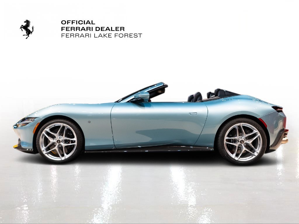 Ferrari of Lake Forest is Proud to Present this Certified Pre Owned 2024 Ferrari Roma Spider Finished in Stunning Celeste Trevi over Nero Leather Interior. The Ferrari Roma Spider is pure Italian elegance set free. With its sleek lines, long bonnet and beautifully tailored fabric roof, it turns every drive into a sun-drenched celebration of la dolce vita. Underneath, a crisp twin-turbo V8 delivers effortless thrust and a rich soundtrack that builds with every shift. Its refined, romantic and quietly ferocious all at once a grand touring Ferrari made even more irresistible with the sky above you. The Ferrari Certified Pre Owned Coverage is Included in our asking price. For more information on this Certified Pre Owned Ferrari Roma Spider call one of our Ferrari Specialists today at 847.295.6560.