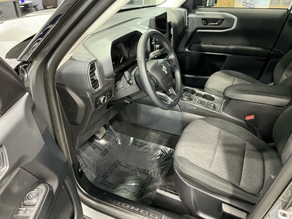 Step into your next adventure with the 2024 Ford Bronco Sport Big Bend, wrapped in a sleek Gray Metallic exterior and complemented by a striking Ebony interior. Powered by a lively 1.5L EcoBoost engine paired with an 8-speed automatic transmission, this compact SUV is built to tackle both city streets and rugged trails with equal prowess. Designed with four-wheel-drive capability, it promises a confident journey no matter the terrain, making it your ideal companion for weekend getaways and daily commutes alike. Inside, you'll find a comfort-focused cabin featuring Unique Cloth Front Bucket Seats that cradle you in ergonomic bliss as you conquer the road. Automatic temperature control ensures your journeys remain comfortable, while the spacious interior promises plenty of versatility with a split-folding rear seat to accommodate both passengers and gear alike. The interior isn't just about comfort, it's about creating the ideal setting where you can enjoy the ride to its fullest. Tech-savvy travelers will appreciate the SYNC 3 Communications & Entertainment System. Whether you're tuning into your favorite SiriusXM channels or navigating through the city streets, this intuitive system makes sure you're always connected and entertained. Steering wheel-mounted audio controls allow you to have everything at your fingertips, so you can focus on the adventure ahead. Safety is paramount in the Bronco Sport, and it doesn't disappoint. With advanced features like dual front impact airbags, dual side impact airbags, and an emergency communication system via SYNC 3 911 Assist, you and your loved ones are always in good hands. The Electronic Stability Control and brake assist work seamlessly to provide additional confidence under various driving conditions, while the Auto High-Beam Headlights adjust to enhance your visibility at night. The exterior doesn't just boast good looks with its Carbonized Gray Aluminum wheels; it's designed for practicality. From the heated door mirrors for those chilly mornings to speed-sensitive wipers, every detail has been engineered to make your driving experience smoother and safer.
