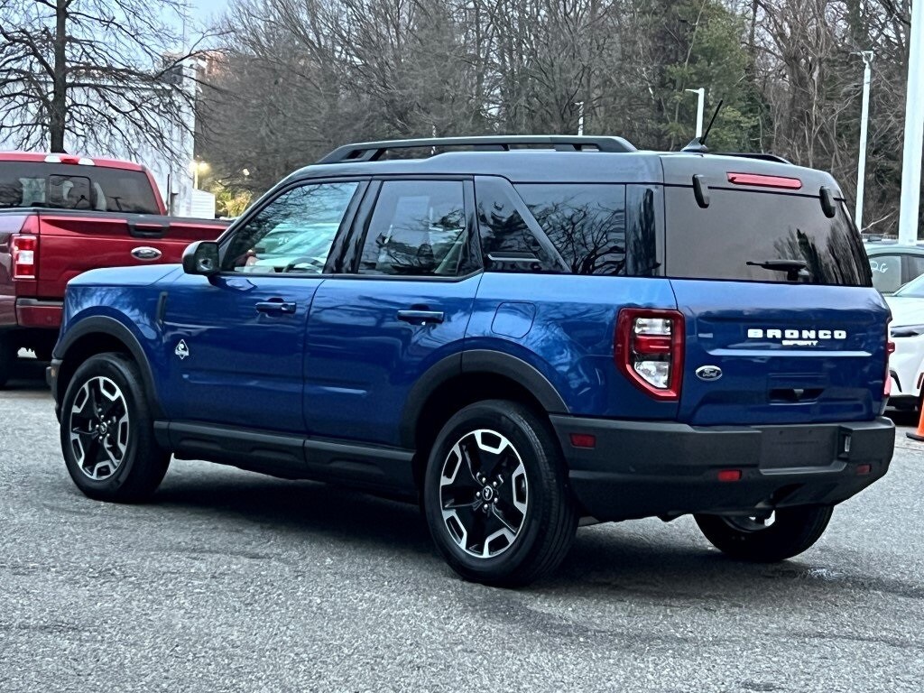 All the right equipment and a great price that includes being certified 7 years/100,000 miles, local trade-in, 1 owner, no accidents and well maintained per Carfax, great gas mileage, 4x4, traction control, power moonroof, navigation system, premium audio system with USB port, Sirius satellite radio, leather steering wheel with audio and cruise control, SYNC 3, back-up camera, reverse sensing system, power windows, locks and mirrors, power seats, dual heated power mirrors with security approach lights, intelligent access with push button start, remote start system, remote keyless entry with door keypad, fog lights, dual digital auto climate control. Bronco Sport Outer Banks, 1.5L EcoBoost, 8-Speed Automatic, 4WD, Atlas Blue Metallic, Navy Pier Cloth, 6 Speakers, Auto High-beam Headlights, Equipment Group 300A, Evasive Steering Assist, Ford Co-Pilot360 Assist+, Front anti-roll bar, Fully automatic headlights, HD Radio, Heated front seats, Intelligent Adaptive Cruise Control with Stop & Go, Memory seat, Rain sensing wipers, Rear anti-roll bar, Tech Package, Universal Garage Door Opener (UGDO), Voice-Activated Touchscreen Navigation System, Wheels: 18" Ebony Black-Painted Aluminum. Atlas Blue Metallic. No dealer preparation, reconditioning or pre-delivery fees added back to the Ourisman value price.
