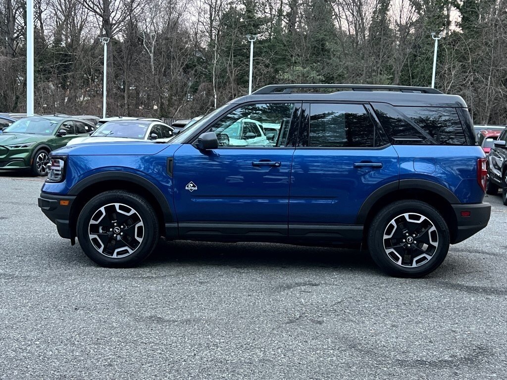 All the right equipment and a great price that includes being certified 7 years/100,000 miles, local trade-in, 1 owner, no accidents and well maintained per Carfax, great gas mileage, 4x4, traction control, power moonroof, navigation system, premium audio system with USB port, Sirius satellite radio, leather steering wheel with audio and cruise control, SYNC 3, back-up camera, reverse sensing system, power windows, locks and mirrors, power seats, dual heated power mirrors with security approach lights, intelligent access with push button start, remote start system, remote keyless entry with door keypad, fog lights, dual digital auto climate control. Bronco Sport Outer Banks, 1.5L EcoBoost, 8-Speed Automatic, 4WD, Atlas Blue Metallic, Navy Pier Cloth. No dealer preparation, reconditioning or pre-delivery fees added back to the Ourisman value price.
