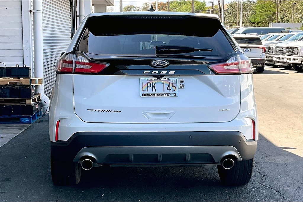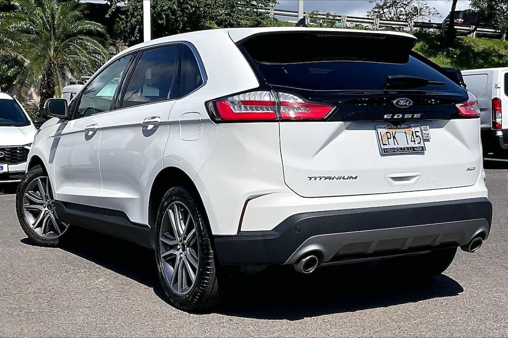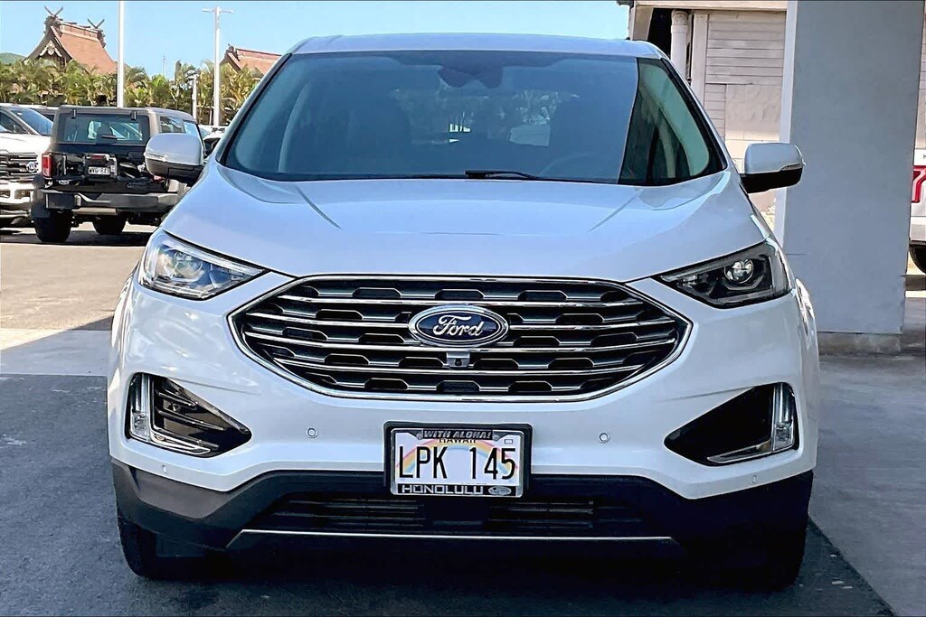 HONOLULU Ford! 808-532-1700, "Dont wait! Call now!!" Financing available, guaranteed approvals! Low payments! Great interest rates! Ford certified vehicle! 172 point inspection, oil change, new wipers, new air filters, full detail, we ship to neighbor islands! 172 point inspection by factory trained technicians! State safety inspection complete! Apple CarPlay/Android Auto, Bluetooth hands free calling, one owner! Accident free Carfax! Panoramic roof, leather seats, heated seats, back-up camera, 360 surround vision camera, bought and serviced here, well taken care of, excellent fuel economy, premium wheels, excellent condition! Excellent service history! Ready for you to drive home today! Adaptive cruise control, parking sensors, upgraded wheels, touch screen, AWD, 12 speakers. Recent arrival! CARFAX One-Owner. Star White Metallic Tri-Coat 2024 Ford Edge Titanium AWD 8-Speed Automatic EcoBoost 2.0L I4 GTDi DOHC Turbocharged VCT. Odometer is 36295 miles below market average! 21/28 City/Highway MPG. Visit us today! At Honolulu Ford where we make sure our customers feel empowered, respected and connected. Our preowned vehicles stand above the rest with a 172 point inspection by factory trained technicians, a 60-day warranty on vehicles under 80,000 miles, competitive prices using mainland comps and the best financing options for you and your family. We carry all makes and models so we can find the perfect vehicle for any situation. Think of us as a secondary lemon lot for our Ohana and come see how a buying experience should be at Honolulu Ford. Save time. Be happy.