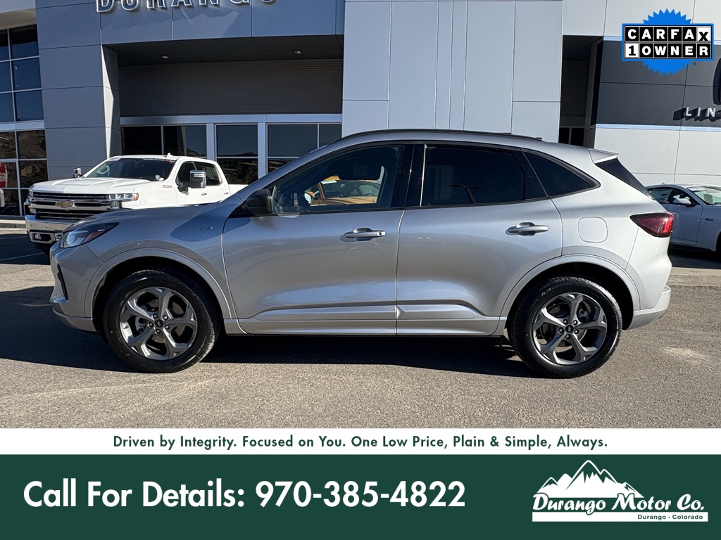 Certified! Introducing the 2024 Ford Escape ST-Line, now available at Durango Motor Company in Durango, Colorado. With only 46,745 miles on the odometer, this compact SUV is designed for those who appreciate a blend of style and practicality. The ST-Line trim adds sporty aesthetics, enhancing both the exterior and interior appeal. Whether you're commuting through city streets or hitting the highway for a weekend getaway, this Escape promises a comfortable and dynamic driving experience. Equipped with advanced features and solid performance, the Ford Escape ST-Line is an excellent choice for anyone seeking versatility in their vehicle. Its efficient design ensures that you can enjoy your journeys without frequent stops at the pump, making it a smart option for daily drives or longer trips. Visit us today at Durango Motor Company to explore how this Escape can fit seamlessly into your lifestyle. At Durango Motor Company in Durango, Colorado, our non-commissioned sales team is here to help you find the right vehicle at the right price. If you like more details, extra photos, or a personalized walk-around video, our team is happy to help.