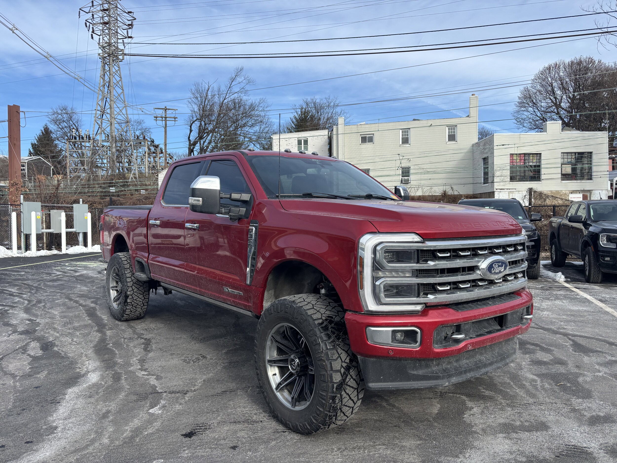 One owner, clean vehicle history...no accidents, recent trade in, moonroof sunroof, Ford Gold Certified Certified, 4WD, FX4 Off-Road Package, Hill Descent Control, Navigation system: Connected Navigation (includes complimentary 1-year trial), Off-Road Specifically Tuned Shock Absorbers, Snow Plow Prep Package, Unique FX4 Off-Road Box Decal. Price excludes sales tax, DMV, $898 doc fee and $995 used car prep fee. All vehicles are cosmetically as-is. CARFAX One-Owner. Clean CARFAX. Certified. Recent Arrival! Red Metallic 2024 Ford F-350SD Platinum 4WD 10-Speed Automatic Power Stroke 6.7L V8 DI 32V OHV Turbodiesel. Odometer is 3535 miles below market average!