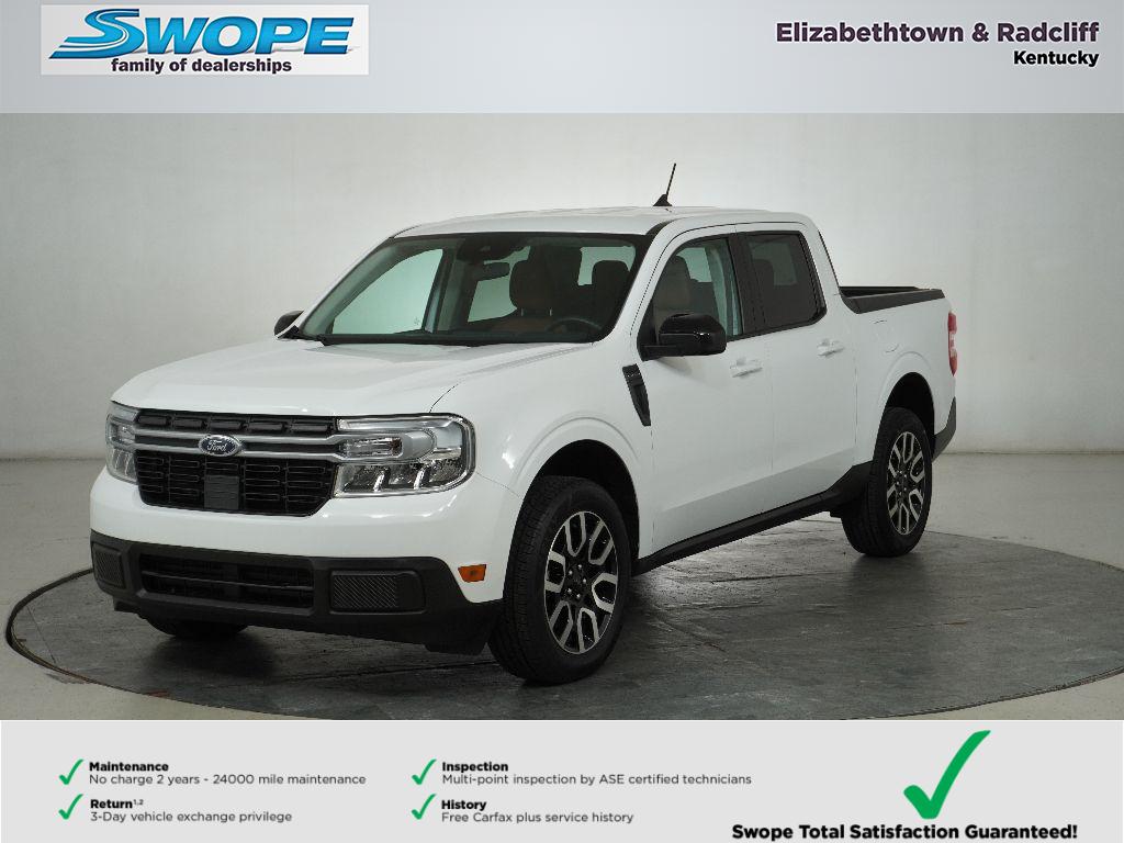 Ford Gold Certified Pre-Owned! Welcome to Bob Swope Ford's exclusive listing of pre-owned vehicles. Call 270-737-1000 to speak to one of our certified Product Specialist to discover all this vehicle has to offer and see why we are a different dealership. Check out all our vehicles online at bobswopeford.com. This Ford Gold Certified Maverick Lariat Hybrid FWD comes nicely equipped with Lariat unique seating, Lane Keeping System, Blind Spot Info System, Navigation, SYNC3 with 8" color touchscreen, FordPass Connect, wireless charging pad, Intelligent Access with push button start, remote start, rear camera with reverse sensors, B&O premium audio with 8 speakers, spray in bed liner, heated tilt steering wheel with audio and cruise controls, dual auto climate control, ambient lighting, auto LED headlamps, LED box lighting, power tailgate lock, and Lariat unique aluminum wheels. This Maverick Ford Blue Advantage Gold Certified Pre-Owned has successfully passed a stringent 172-point inspection and comes with an additional 12-months/12,000 miles of a comprehensive limited warranty, balance of a 7-year/100,000 mile limited Powertrain warranty, 24-hour roadside assistance and a full tank of fuel. Total Peace of Mind with a Ford backed Certified Pre-Owned Vehicle.