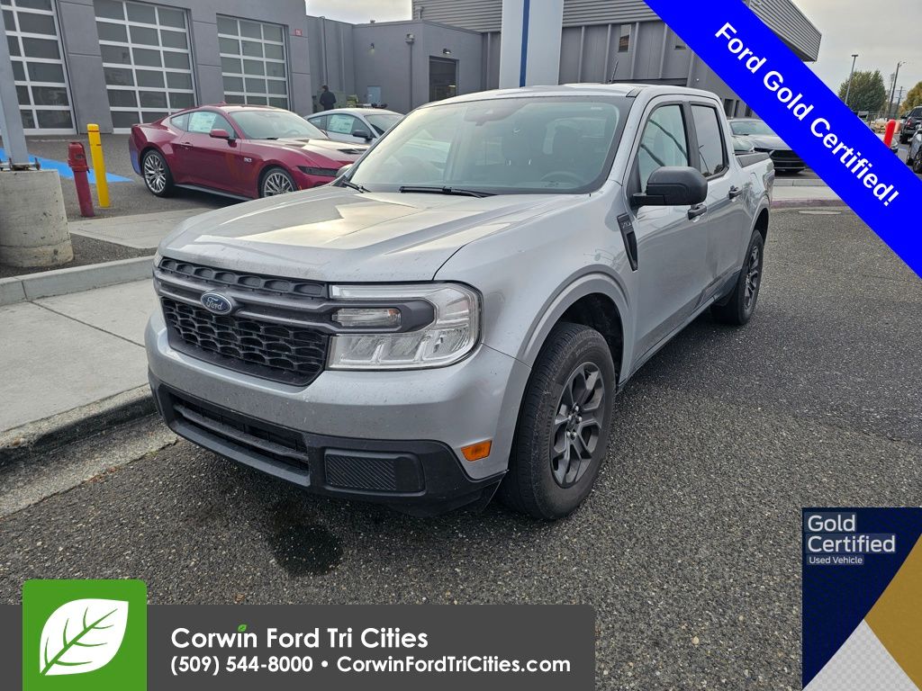 Our Accident Free, One Owner, Certified Pre-Owned 2024 Ford Maverick XLT SuperCrew AWD sets a high bar for having fun and getting things done in Iconic Silver Metallic! Motivated by a TurboCharged 2.0 Liter EcoBoost 4 Cylinder providing 250hp to an 8 Speed Automatic transmission for a confident driving experience at work or play. This All Wheel Drive truck also returns nearly 29mpg on the highway with a rugged design. A distinctive gray grille bar leads the way for our Maverick, complementing bold alloy wheels, LED lighting, black mirror caps, a multi-position tailgate, and a versatile Flexbed system with passenger-side cubby storage. Our XLT cabin is all about everyday comfort with exclusive cloth seats, a multifunction steering wheel, air conditioning, keyless access, cruise control, 12V outlets, and rewarding technology to help you connect. Your mobile command post includes an 8-inch touchscreen, 4.2-inch driver display, Apple CarPlay®, Android Auto®, Bluetooth®, voice recognition, and a six-speaker audio system. There's plenty of intelligent interior storage, too! Smart safety comes into play with sophisticated Ford features like automatic braking, pedestrian detection, forward collision warning, a rearview camera, tire pressure monitoring, ABS, Safety Canopy airbags, and more. Now buy our Maverick XLT and break the mold for compact trucks! Save this Page and Call for Availability. We Know You Will Enjoy Your Corwin Ford Tri-City Test Drive Towards Ownership!