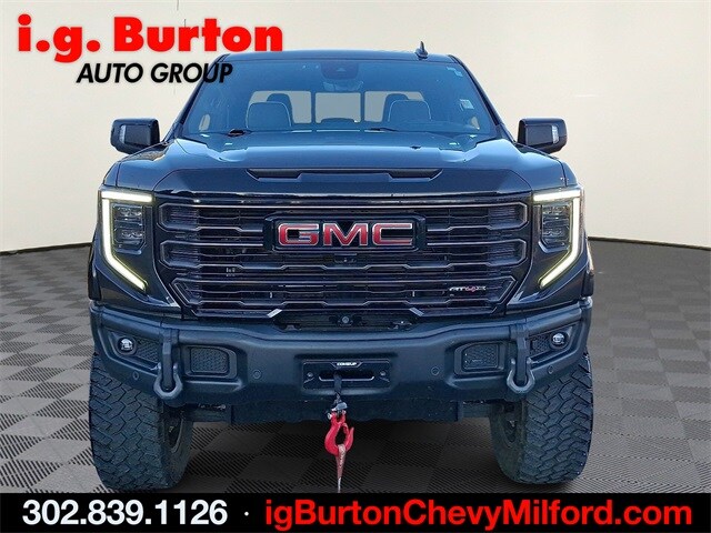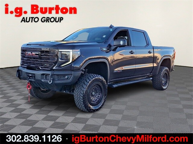 See it at the Milford Chevy location, Bluetooth hands free phone, Backup Camera, Leather seating, 4x4, 10-Speed Automatic, 4WD, Obsidian Rush Leather, 120-Volt Bed Mounted Power Outlet, 120-Volt Interior Power Outlet, 2 Charge/Data USB Ports Inside Center Console, 2 Type-C Charge-Only Rear USB Ports, 2 USB Ports, Bed View Camera, Bose Premium Series w/12-Speaker System, Color-Keyed Carpeting Floor Covering, Deep-Tinted Glass, Driver-Selectable Full-Locking Front Differential, Driver-Selectable Full-Locking Rear Differential, Electric Rear-Window Defogger, Floor-Mounted Center Console, Front Prem Floor Liners w/Removable Carpet Insert, Front Rain-Sensing Wipers, Gloss Black Header w/Drk Nickel Grille Insert Bars, GMC Connected Access Capable, HD Surround Vision, Heated 2nd Row Outboard Seats, Heated Driver & Front Outboard Passenger Seating, Heavy-Duty Air Filter, Hill Descent Control, Hitch Guidance, Hitch View, In-Vehicle Trailering System App, Integrated Trailer Brake Controller, Keyless Open & Start, LED Cargo Area Lighting, Multicolor 15" Diagonal Head-Up Display, MultiPro Tailgate Audio System by Kicker (LPO), Navigation System, OnStar & GMC Connected Services Capable, Perimeter Lighting, Power Door Locks, Power Front Passenger Windows w/Express Up/Down, Power Front Windows w/Driver Express Up/Down, Power Rake & Telescoping Steering Column, Power Rear Windows w/Express Down, Power Sliding Rear Window w/Rear Defogger, Power Sunroof, Preferred Equipment Group 4SG, Push Button Start, Rear Cross Traffic Braking, Rear Pedestrian Detection, Rear Prem Floor Liners w/Removable Carpet Insert, Rear Wheelhouse Liners, Remote Vehicle Starter System, SiriusXM w/360L, Spray-On Pickup Bedliner w/AT4X Logo, Steering Wheel Audio Controls, Theft Deterrent System (Unauthorized Entry), Trailer Camera Provisions, Trailer Side Blind Zone Alert, Trailer Tire Pressure Monitor System, Trailering Package, Ultrasonic Front & Rear Park Assist, Universal Home Remote, Ventilated Driver & Front Passenger Seats, Wi-Fi Hotspot Capable, Wireless Charging. 2024 GMC Sierra 1500 AT4X Priced below KBB Fair Purchase Price! CARFAX One-Owner. Clean CARFAX. Certified. GMC Certified Pre-Owned Details: Powertrain Limited Warranty: 72 Month/100,000 Mile (whichever comes first) from original in-service date. 172 Point Inspection. Transferable Warranty. Roadside Assistance. Warranty Deductible: $0. Limited Warranty: 12 Month/12,000 Mile (whichever comes first) from certified purchase date. Vehicle History. 24 months/24,000 miles (whichever comes first) Certified Pre-Owned Scheduled Maintenance Plan and 3 days/150 miles (whichever comes first) Vehicle Exchange Program. SiriusXM 3-month trial subscription. Since 1908, i.g. Burton Auto Group has served Delmarva and its surrounding communities with outstanding sales and service as its longest-standing family-owned and operated dealer group. See why we proudly say, "Nobody Beats a Burton Deal! NOBODY!"