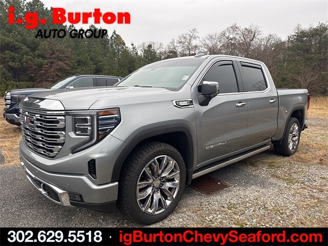 2024 GMC Sierra 1500 Crew Cab, Denali, Reserve Package, 3.0L Diesel with just 14k miles! Clean Carfax, one owner truck. Freshly serviced, GM certified pre owned and ready to go! Like new, must see! This vehicle is scheduled to leave for Manheim Auto Auction and is being offered for a limited time, see it at the Seaford Chevrolet location. Recent arrival! 2024 GMC Sierra 1500 Denali Sterling Metallic Clean Carfax. Carfax one-owner. GMC Certified Pre-Owned Details: 172 Point Inspection, 24 months/24,000 miles (whichever comes first) Certified Pre-Owned Scheduled Maintenance Plan and 3 days/150 miles (whichever comes first) Vehicle Exchange Program. SiriusXM 3-month trial subscription, Roadside Assistance, Warranty Deductible: $0, Transferable Warranty, Limited Warranty: 12 Month/12,000 Mile (whichever comes first) from certified purchase date, Powertrain Limited Warranty: 72 Month/100,000 Mile (whichever comes first) from original in-service date, Vehicle History. Certified. Since 1908, i.G. Burton Auto Group has served Delmarva and its surrounding communities with outstanding sales and service as its longest-standing family-owned and operated dealer group. See why we proudly say, "Nobody Beats a Burton Deal! NOBODY!"