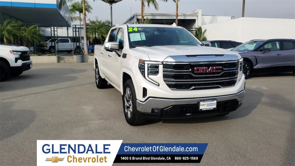 CARFAX One-Owner. White Frost Tricoat 2024 GMC Sierra 1500 SLT 4D Crew Cab 4WD 10-Speed Automatic 3.0L I6 10-Speed Automatic, 4WD, Jet Black Leather. Why Buy from Glendale Chevrolet? Buying a car in Los Angeles can feel overwhelming fast responses, but rarely the right information. At Glendale Chevrolet, we do things differently. Under new ownership, our team is built around accuracy, honesty, and accountability from your first interaction to the moment you drive home. We provide: Verified availability checked by real managers Transparent, upfront pricing with no hidden fees A relaxed, zero-pressure experience Fast, consistent communication Access to inventory across Southern California if we don’t have your exact match We’re not the biggest store in LA we’re the store that treats you the best. A better Chevy experience starts right here at Glendale Chevrolet. Odometer is 13573 miles below market average! 23/27 City/Highway MPG